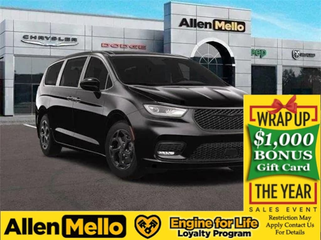 Allen Mello Chrysler Jeep Dodge Ram is proud to present you with another True Market Priced Vehicle. This 2023 Chrysler Pacifica Hybrid Touring L is loaded with the following Factory Options: Quick Order Package 2EL, S Appearance Package (Anodized Ice Cave Accents, Anodized Ink Badging, Black Day Light Opening Moldings, Caprice Leatherette Bucket Seats w/S Logo, Front Fascia Air Deflectors, Piano Black Interior Accents, Premium Fascia Upper/Lower Grille w/Black Surround, Premium Rear Fascia Black, S Badge, and Wheels: 18" x 7.5" S-Model Aluminum Design 3), and 3.6L V6 Quick Order Package 2EL, S Appearance Package (Anodized Ice Cave Accents, Anodized Ink Badging, Black Day Light Opening Moldings, Caprice Leatherette Bucket Seats w/S Logo, Front Fascia Air Deflectors, Piano Black Interior Accents, Premium Fascia Upper/Lower Grille w/Black Surround, Premium Rear Fascia Black, S Badge, and Wheels: 18" x 7.5" S-Model Aluminum Design 3), 3.6L V6, 10.1" Touchscreen Display, 3.59 Axle Ratio, 3rd row seats: split-bench, 4-Wheel Disc Brakes, 6 Speakers, ABS brakes, Air Conditioning, Alloy wheels, AM/FM radio: SiriusXM, Apple CarPlay, Apple CarPlay/Android Auto, Auto-dimming Rear-View mirror, Automatic temperature control, Black Seats, Brake assist, Bumpers: body-color, Caprice Leatherette Bucket Seats, Compass, Delay-off headlights, Disassociated Touchscreen Display, Driver door bin, Driver vanity mirror, Driver's Seat Mounted Armrest, Dual front impact airbags, Dual front side impact airbags, Electronic Stability Control, Emergency communication system: Uconnect Access, Exterior Parking Camera Rear, Four wheel independent suspension, Front anti-roll bar, Front Bucket Seats, Front dual zone A/C, Front fog lights, Front reading lights, Fully automatic headlights, Google Android Auto, GPS Antenna Input, Heated door mirrors, Heated front seats, Heated steering wheel, Heavy Duty Suspension, Illuminated entry, Integrated Active Noise Cancellation, Integrated Center Stack Radio, Knee airbag, Low tire pressure warning, Memory seat, Occupant sensing airbag, Outside temperature display, Overhead airbag, Overhead console, Panic alarm, Passenger door bin, Passenger seat mounted armrest, Passenger vanity mirror, Power door mirrors, Power driver seat, Power Liftgate, Power steering, Power windows, Radio data system, Radio: Uconnect 5 w/10.1" Display, Rain sensing wipers, Rear air conditioning, Rear reading lights, Rear window defroster, Rear window wiper, Reclining 3rd row seat, Remote keyless entry, Security system, Speed control, Split folding rear seat, Spoiler, Steering wheel mounted audio controls, Tachometer, Telescoping steering wheel, Tilt steering wheel, Traction control, Trip computer, Turn signal indicator mirrors, USB Host Flip, Variably intermittent wipers, Voltmeter, and Wheels: 17" x 7.0" Diamond Cut w/Painted Pockets!!