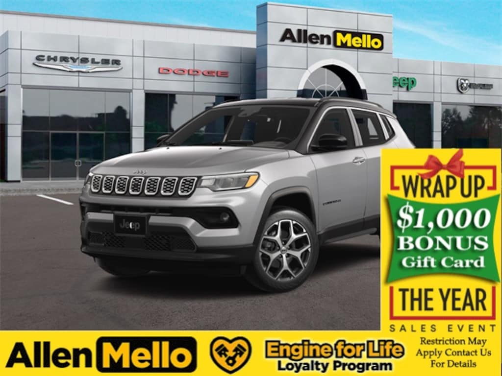 Allen Mello Chrysler Jeep Dodge Ram is proud to present you with another True Market Priced Vehicle. This 2025 Jeep Compass Limited is loaded with the following Factory Options: 4WD Quick Order Package 29G, 4WD, 10.1" Touchscreen Display, 3.73 Final Drive Ratio, 4-Wheel Disc Brakes, 6 Speakers, ABS brakes, Air Conditioning, Alloy wheels, AM/FM radio: SiriusXM, Apple CarPlay/Android Auto, Auto High-beam Headlights, Auto-dimming Rear-View mirror, Automatic temperature control, Brake assist, Bumpers: body-color, Compass, Delay-off headlights, Driver door bin, Driver vanity mirror, Dual front impact airbags, Dual front side impact airbags, Electronic Stability Control, Emergency communication system: Jeep Connect, Four wheel independent suspension, Front anti-roll bar, Front Bucket Seats, Front Center Armrest w/Storage, Front dual zone A/C, Front fog lights, Front License Plate Bracket, Front reading lights, Fully automatic headlights, Heated door mirrors, Heated front seats, Illuminated entry, Knee airbag, Leather Shift Knob, Leather steering wheel, Leatherette Seats, Low tire pressure warning, Occupant sensing airbag, Outside temperature display, Overhead airbag, Overhead console, Panic alarm, ParkView Rear Back-Up Camera, Passenger door bin, Passenger vanity mirror, Power door mirrors, Power driver seat, Power steering, Power windows, Premium audio system: UConnect 5, Radio: Uconnect 5 w/10.1" Display, Rain sensing wipers, Rear anti-roll bar, Rear seat center armrest, Rear window defroster, Rear window wiper, Remote keyless entry, Security system, Speed control, Split folding rear seat, Spoiler, Steering wheel mounted audio controls, Tachometer, Telescoping steering wheel, Tilt steering wheel, Traction control, Trip computer, Turn signal indicator mirrors, Variably intermittent wipers, and Wheels: 18" x 7" Painted Diamond Cut Alum (DISC)!! Discount includes a $1,000 Hospital, Military, Firefighters, Police or School Employees must show proof of employment. Price does not include tax, title, license, and document fees. Not all customers qualify for all rebates. Contact us for more information. Price includes: $1500 - 2025 National Retail Bonus Cash . Exp. 12/01/2025 $2000 - 2025 National Holiday Select Inventory Bonus Cash. Exp. 12/01/2025
