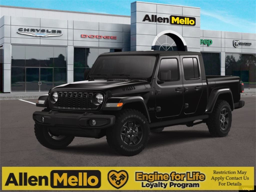 Allen Mello Chrysler Jeep Dodge Ram is proud to present you with another True Market Priced Vehicle. This 2025 Jeep Gladiator Willys is loaded with the following Factory Options: Convenience Group (Corning Gorilla Glass, Daytime Running Lamp System, Emergency/Assistance Call, Front Door Locks 2-Door Passive Entry, Heated Front Seats, Heated Steering Wheel, Remote Start System, and Universal Garage Door Opener), Quick Order Package 24W Willys (4-Wheel Drive Decal, Advanced Brake Assist, Air Conditioning w/Auto Temperature Control, Automatic Headlamps, Auxiliary Switches, Black Grille, Body Color Fender Flares (2-Piece), Class IV Receiver Hitch, Cluster 7.0" TFT Color Display, Daytime Running Lamps LED Accents, Deep Tint Sunscreen Windows, E-Locker Rear Axle, Enhanced Adaptive Cruise Control, Front Heavy Duty Red Accent Shock Absorbers, Front LED Fog Lamps, Full Speed Forward Collision Warning Plus, Heavy-Duty Engine Cooling, LED Premium Reflector Headlamps, LED Taillamps, Mold In Color Bumper w/Gloss Black, MOPAR All-Weather Slush Mats, Off-Road Plus Mode, Power Heated Mirrors, Premium Wrapped Steering Wheel, Protection Sill Rails, Rear Heavy Duty Red Accent Shock Absorbers, Security Alarm, Sun Visors w/Illuminated Vanity Mirrors, Trailer Hitch Zoom, Wheels: 17" x 7.5" Painted Black, Willys Hood Decal, and Willys Suspension), Technology Group (115V Auxiliary Power Outlet, 12.3" Touchscreen Display, 400W Inverter, 4G LTE Wi-Fi Hot Spot, Alexa Built-In, Apple CarPlay, Auto-Dimming Rear-View Mirror, Bluetooth Wireless Speaker, Connected Travel & Traffic Services, Connectivity - US/Canada, Google Android Auto, GPS Antenna Input, GPS Navigation, HD Radio, Integrated Center Stack Radio, Integrated Voice Command w/Bluetooth, Media Hub w/2 Charge Only USBs, Radio: Uconnect 5 Nav w/12.3" Display, SiriusXM Radio Service, SiriusXM w/360L, and USB Host Flip), 110 MPH Vehicle Max Speed Calibration, 3.73 Rear Axle Ratio, 4-Wheel Disc Brakes, 8 Speakers, ABS brakes, Air Conditioning, Alpine Premium Audio System, AM/FM radio: SiriusXM, Apple CarPlay/Android Auto, Black 3-Piece Hard Top, Brake assist, Cloth Low-Back Bucket Seats, Compass, Delay-off headlights, Driver door bin, Driver vanity mirror, Dual front impact airbags, Dual front side impact airbags, Electronic Stability Control, Freedom Panel Storage Bag, Front anti-roll bar, Front Bucket Seats, Front Center Armrest w/Storage, Front fog lights, Front License Plate Bracket, Front reading lights, Illuminated entry, Integrated roll-over protection, Low tire pressure warning, MOPAR Hardtop Headliner, MOPAR Multi-Function Accessory Rail, MOPAR Plastic Door Sill Guards, MOPAR Spray In Bedliner, Normal Duty Suspension, Occupant sensing airbag, Outside temperature display, Overhead airbag, Panic alarm, ParkView Rear Back-Up Camera, Passenger door bin, Passenger vanity mirror, Power steering, Power windows, Radio data system, Radio: Uconnect 5 w/12.3" Display, Rear anti-roll bar, Rear reading lights, Rear Sliding Window, Rear Window Defroster, Remote keyless entry, Speed control, Split folding rear seat, Steering wheel mounted audi Discount includes a $1,000 Hospital, Military, Firefighters, Police or School Employees must show proof of employment. Price does not include tax, title, license, and document fees. Not all customers qualify for all rebates. Contact us for more information. Price includes: $2250 - 2025 N