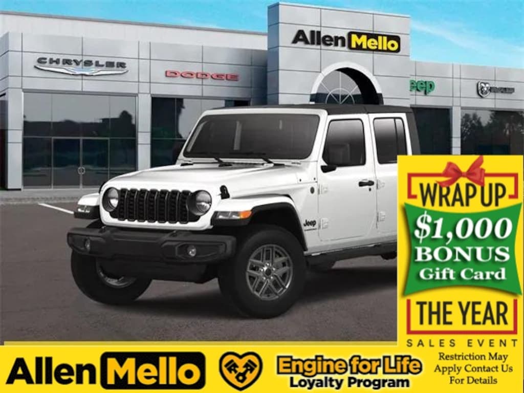 Allen Mello Chrysler Jeep Dodge Ram is proud to present you with another True Market Priced Vehicle. This 2025 Jeep Gladiator Sport S is loaded with the following Factory Options: Convenience Group (Corning Gorilla Glass, Daytime Running Lamp System, Emergency/Assistance Call, Front Door Locks 2-Door Passive Entry, Heated Front Seats, Heated Steering Wheel, Remote Start System, and Universal Garage Door Opener), Dark Sky Appearance Package (Body Color Fender Flares (2-Piece), Mold In Color Bumper w/Gloss Black, and Performance Hood), Quick Order Package 24S Sport S (Advanced Brake Assist, Automatic Headlamps, Deep Tint Sunscreen Windows, Enhanced Adaptive Cruise Control, Full Speed Forward Collision Warning Plus, Normal Duty Plus Suspension, Power Heated Mirrors, Premium Wrapped Steering Wheel, Security Alarm, Sun Visors w/Illuminated Vanity Mirrors, and Wheels: 17" x 7.5" Gray), Technology Group (115V Auxiliary Power Outlet, 12.3" Touchscreen Display, 400W Inverter, 4G LTE Wi-Fi Hot Spot, Alexa Built-In, Apple CarPlay, Auto-Dimming Rear-View Mirror, Bluetooth Wireless Speaker, Connected Travel & Traffic Services, Connectivity - US/Canada, Google Android Auto, GPS Antenna Input, GPS Navigation, HD Radio, Integrated Center Stack Radio, Integrated Voice Command w/Bluetooth, Media Hub w/2 Charge Only USBs, Radio: Uconnect 5 Nav w/12.3" Display, SiriusXM Radio Service, SiriusXM w/360L, and USB Host Flip), 110 MPH Vehicle Max Speed Calibration, 3.73 Rear Axle Ratio, 4-Wheel Disc Brakes, 8 Speakers, ABS brakes, Air Conditioning, Alpine Premium Audio System, AM/FM radio: SiriusXM, Apple CarPlay/Android Auto, Black 3-Piece Hard Top, Brake assist, Cloth Low-Back Bucket Seats, Compass, Delay-off headlights, Driver door bin, Driver vanity mirror, Dual front impact airbags, Dual front side impact airbags, Electronic Stability Control, Freedom Panel Storage Bag, Front anti-roll bar, Front Bucket Seats, Front Center Armrest w/Storage, Front fog lights, Front License Plate Bracket, Front reading lights, Illuminated entry, Integrated roll-over protection, Low tire pressure warning, MOPAR All-Weather Slush Mats, Mopar Black Tubular Side Steps, MOPAR Hardtop Headliner, MOPAR Multi-Function Accessory Rail, MOPAR Spray In Bedliner, Normal Duty Suspension, Occupant sensing airbag, Outside temperature display, Overhead airbag, Panic alarm, ParkView Rear Back-Up Camera, Passenger door bin, Passenger vanity mirror, Power steering, Power windows, Radio data system, Radio: Uconnect 5 w/12.3" Display, Rear anti-roll bar, Rear reading lights, Rear Sliding Window, Rear Window Defroster, Remote keyless entry, Speed control, Split folding rear seat, Steering wheel mounted audio controls, Tachometer, Telescoping steering wheel, Tilt steering wheel, Traction control, Trip computer, Variably intermittent wipers, Voltmeter, and Wheels: 17" x 7.5" Black Steel Styled!! Discount includes a $1,000 Hospital, Military, Firefighters, Police or School Employees must show proof of employment. Price does not include tax, title, license, and document fees. Not all customers qualify for all rebates. Contact us for more information. Price includes: $2250 - 2025 National Bonus Cash . Exp. 01/05/2026