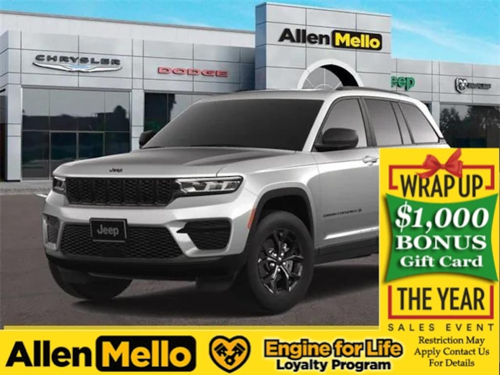 Allen Mello Chrysler Jeep Dodge Ram is proud to present you with another True Market Priced Vehicle. This 2025 Jeep Grand Cherokee Altitude X is loaded with the following Factory Options: 4WD Quick Order Package 23M Altitude X (115V Auxiliary Power Outlet, Altitude X, Black Headliner, Capri Leatherette/Suede Seats, Delete Laredo Badge, Gloss Black Exterior Accents, Heated Front Seats, Heated Steering Wheel, Power Liftgate, Power Sunroof, Rain Sensitive Windshield Wipers, Remote Start System, Selectable Tire Fill Alert, Wheels: 18" x 8" Fully Painted Aluminum 1, and Wireless Charging Pad), 4WD, 4-Wheel Disc Brakes, 6 Speakers, ABS brakes, Air Conditioning, Alloy wheels, AM/FM radio: SiriusXM, Anti-whiplash front head restraints, Automatic temperature control, Brake assist, Bumpers: body-color, Cloth Seats, Compass, Delay-off headlights, Driver door bin, Driver vanity mirror, Dual front impact airbags, Dual front side impact airbags, Electronic Stability Control, Emergency communication system, Four wheel independent suspension, Front anti-roll bar, Front Bucket Seats, Front Center Armrest w/Storage, Front dual zone A/C, Front License Plate Bracket, Front reading lights, Fully automatic headlights, Heated door mirrors, Illuminated entry, Knee airbag, Low tire pressure warning, Model Year Tracking, Normal Duty Suspension, Occupant sensing airbag, Outside temperature display, Overhead airbag, Overhead console, Panic alarm, ParkView Rear Back-Up Camera, Passenger door bin, Passenger vanity mirror, Power door mirrors, Power driver seat, Power steering, Power windows, Radio data system, Radio: Uconnect 5 w/8.4" Display, Rear anti-roll bar, Rear reading lights, Rear window defroster, Rear window wiper, Remote keyless entry, Security system, Speed control, Speed-Sensitive Wipers, Split folding rear seat, Spoiler, Steering wheel mounted audio controls, Tachometer, Telescoping steering wheel, Tilt steering wheel, Traction control, Trip computer, Variably intermittent wipers, Voltmeter, and Wheels: 17" x 6.5" Fully Painted Aluminum!! Discount includes a $1,000 Hospital, Military, Firefighters, Police or School Employees must show proof of employment. Price does not include tax, title, license, and document fees. Not all customers qualify for all rebates. Contact us for more information. Price includes: $2250 - 2025 National Retail Bonus Cash . Exp. 01/05/2026