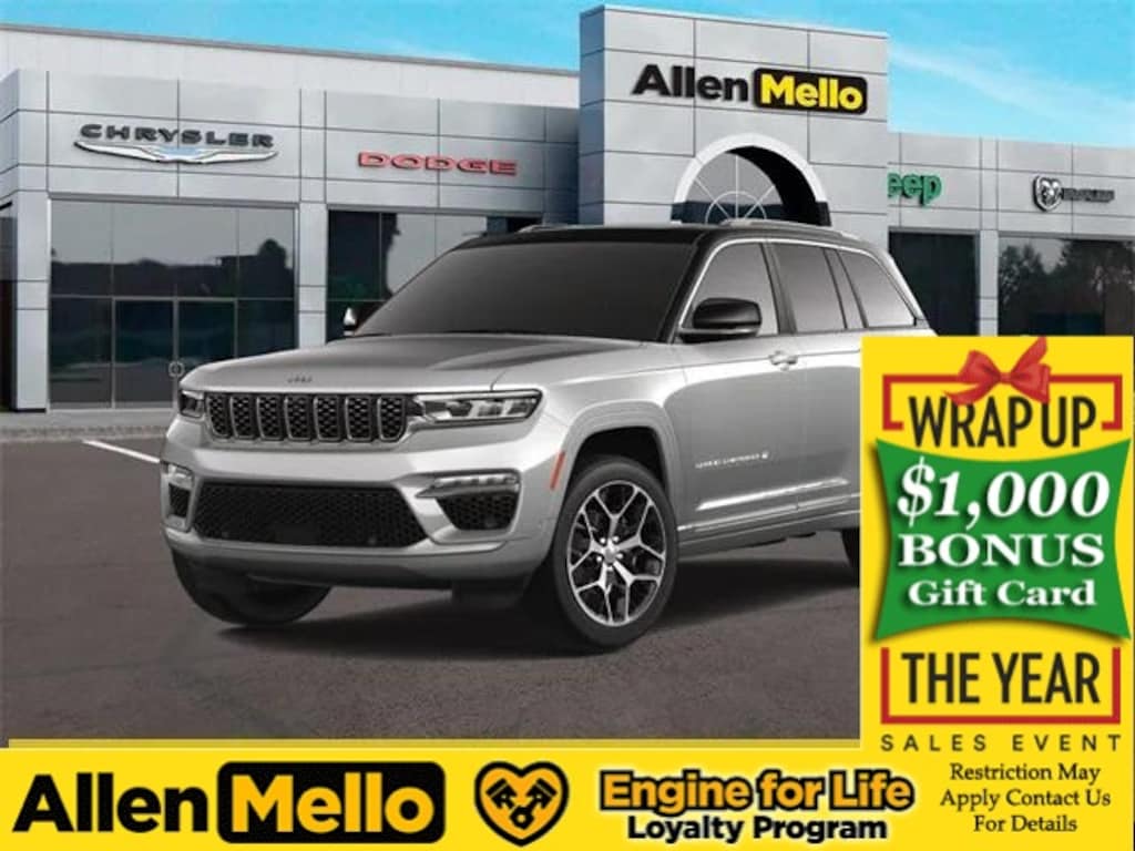 Allen Mello Chrysler Jeep Dodge Ram is proud to present you with another True Market Priced Vehicle. This 2025 Jeep Grand Cherokee Summit is loaded with the following Factory Options: 4WD Luxury Tech Group V (2nd-Row Manual Window Shades and Wireless Charging Pad), Quick Order Package 23U Summit Reserve (19 Speakers High Performance Audio, 950 Watt Amplifier, Active Noise Control System, Deluxe Headliner, Front Passenger Interactive Display, Palermo Leather Door Trim, Palermo Leather Seats, Summit, Summit Badge, Ventilated Rear Seats, and Wheels: 21" x 9" Machined Face/Painted Aluminum), 4WD, 10 Speakers, 4-Wheel Disc Brakes, ABS brakes, Adaptive suspension, Air Conditioning, Alloy wheels, AM/FM radio: SiriusXM with 360L, Anti-whiplash front head restraints, Audio memory, Auto High-beam Headlights, Auto-dimming door mirrors, Auto-dimming Rear-View mirror, Auto-leveling suspension, Automatic temperature control, Auxiliary Battery, Brake assist, Bumpers: body-color, Compass, Delay-off headlights, Driver door bin, Driver vanity mirror, Dual front impact airbags, Dual front side impact airbags, Electronic Stability Control, Emergency communication system, Four wheel independent suspension, Front anti-roll bar, Front Bucket Seats, Front Center Armrest w/Storage, Front dual zone A/C, Front fog lights, Front License Plate Bracket, Front reading lights, Fully automatic headlights, Garage door transmitter, Genuine wood dashboard insert, Genuine wood door panel insert, Heated door mirrors, Heated front seats, Heated rear seats, Heated steering wheel, Illuminated entry, Knee airbag, Leather steering wheel, Low tire pressure warning, Memory seat, Model Year Tracking, Nappa Leather Seats, Navigation System, Normal Duty Suspension, Occupant sensing airbag, Outside temperature display, Overhead airbag, Overhead console, Panic alarm, Passenger door bin, Passenger vanity mirror, Power door mirrors, Power driver seat, Power Liftgate, Power moonroof, Power passenger seat, Power steering, Power windows, Radio data system, Radio: Uconnect 5 Nav with 10.1" Display, Rain sensing wipers, Rear air conditioning, Rear anti-roll bar, Rear dual zone A/C, Rear reading lights, Rear seat center armrest, Rear window defroster, Rear window wiper, Remote keyless entry, Security system, Speed control, Speed-Sensitive Wipers, Split folding rear seat, Spoiler, Steering wheel memory, Steering wheel mounted audio controls, Tachometer, Telescoping steering wheel, Tilt steering wheel, Traction control, Trip computer, Turn signal indicator mirrors, Variably intermittent wipers, Ventilated front seats, Voltmeter, and Wheels: 20" x 8.5" Fully Painted Aluminum Silver!! Discount includes a $1,000 Hospital, Military, Firefighters, Police or School Employees must show proof of employment. Price does not include tax, title, license, and document fees. Not all customers qualify for all rebates. Contact us for more information. Price includes: $2250 - 2025 National Retail Bonus Cash . Exp. 01/05/2026