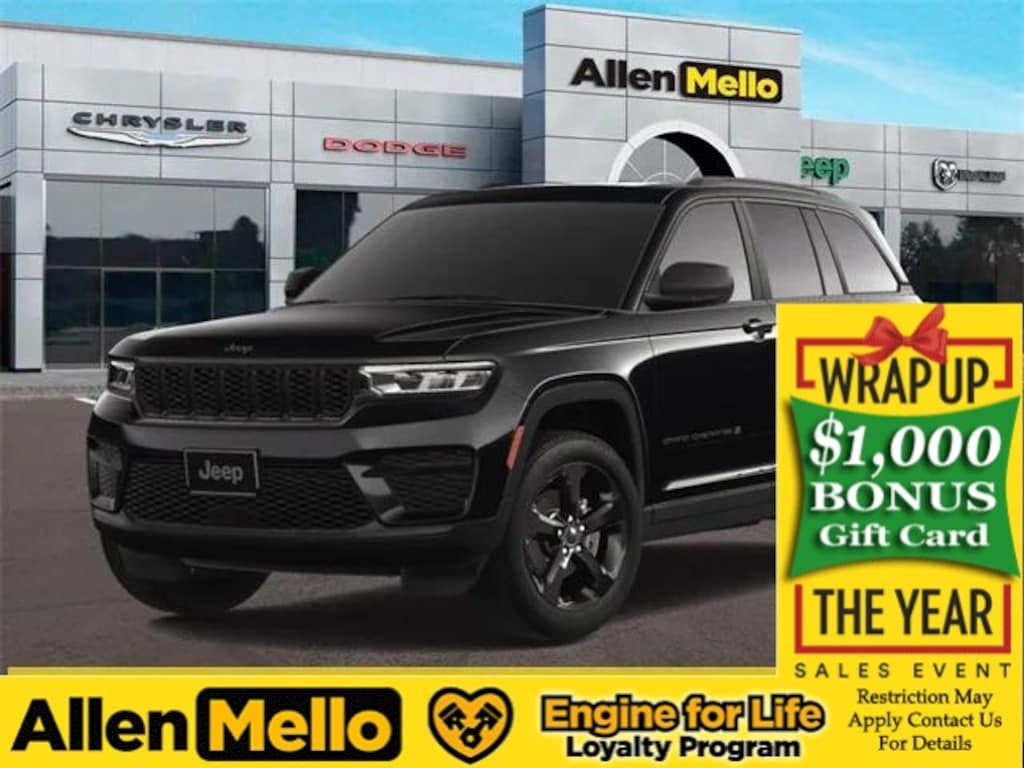Allen Mello Chrysler Jeep Dodge Ram is proud to present you with another True Market Priced Vehicle. This 2025 Jeep Grand Cherokee Altitude X is loaded with the following Factory Options: 4WD Quick Order Package 23M Altitude X (115V Auxiliary Power Outlet, Altitude X, Black Headliner, Capri Leatherette/Suede Seats, Delete Laredo Badge, Gloss Black Exterior Accents, Heated Front Seats, Heated Steering Wheel, Power Liftgate, Power Sunroof, Rain Sensitive Windshield Wipers, Remote Start System, Selectable Tire Fill Alert, Wheels: 18" x 8" Fully Painted Aluminum 1, and Wireless Charging Pad), 4WD, 4-Wheel Disc Brakes, 6 Speakers, ABS brakes, Air Conditioning, Alloy wheels, AM/FM radio: SiriusXM, Anti-whiplash front head restraints, Automatic temperature control, Brake assist, Bumpers: body-color, Cloth Seats, Compass, Delay-off headlights, Driver door bin, Driver vanity mirror, Dual front impact airbags, Dual front side impact airbags, Electronic Stability Control, Emergency communication system, Four wheel independent suspension, Front anti-roll bar, Front Bucket Seats, Front Center Armrest w/Storage, Front dual zone A/C, Front License Plate Bracket, Front reading lights, Fully automatic headlights, Heated door mirrors, Illuminated entry, Knee airbag, Low tire pressure warning, Model Year Tracking, Normal Duty Suspension, Occupant sensing airbag, Outside temperature display, Overhead airbag, Overhead console, Panic alarm, ParkView Rear Back-Up Camera, Passenger door bin, Passenger vanity mirror, Power door mirrors, Power driver seat, Power steering, Power windows, Radio data system, Radio: Uconnect 5 with 8.4" Display, Rear anti-roll bar, Rear reading lights, Rear window defroster, Rear window wiper, Remote keyless entry, Security system, Speed control, Speed-Sensitive Wipers, Split folding rear seat, Spoiler, Steering wheel mounted audio controls, Tachometer, Telescoping steering wheel, Tilt steering wheel, Traction control, Trip computer, Variably intermittent wipers, Voltmeter, Wheels: 17" x 6.5" Fully Painted Aluminum, and Wheels: 20" x 8.5" Gloss Black Painted Aluminum!! Discount includes a $1,000 Hospital, Military, Firefighters, Police or School Employees must show proof of employment. Price does not include tax, title, license, and document fees. Not all customers qualify for all rebates. Contact us for more information. Price includes: $2250 - 2025 National Retail Bonus Cash . Exp. 01/05/2026