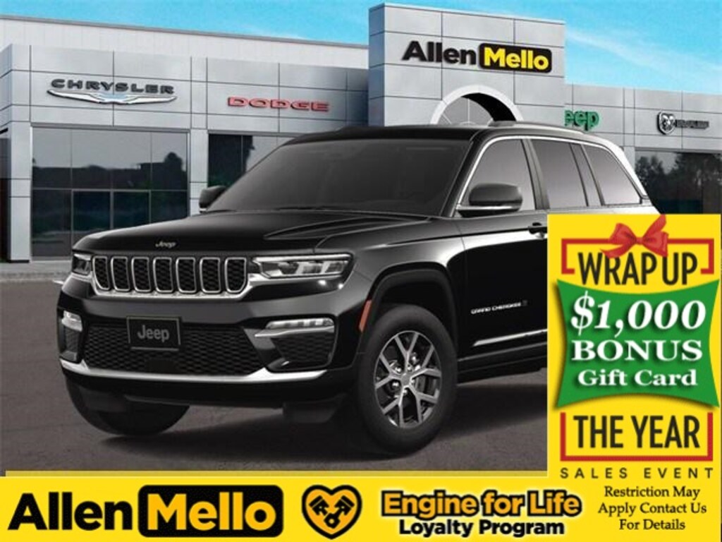 Allen Mello Chrysler Jeep Dodge Ram is proud to present you with another True Market Priced Vehicle. This 2025 Jeep Grand Cherokee Limited is loaded with the following Factory Options: 4WD Quick Order Package 22E, 4WD, 4-Wheel Disc Brakes, 6 Speakers, ABS brakes, Active Noise Control System, Air Conditioning, Alloy wheels, AM/FM radio: SiriusXM with 360L, Anti-whiplash front head restraints, Audio memory, Auto High-beam Headlights, Automatic temperature control, Brake assist, Bumpers: body-color, Capri Leatherette Seats, Compass, Delay-off headlights, Driver door bin, Driver vanity mirror, Dual front impact airbags, Dual front side impact airbags, Dual-Pane Panoramic Sunroof, Electronic Stability Control, Emergency communication system, Four wheel independent suspension, Front anti-roll bar, Front Bucket Seats, Front Center Armrest w/Storage, Front dual zone A/C, Front fog lights, Front License Plate Bracket, Front reading lights, Fully automatic headlights, Garage door transmitter, Heated door mirrors, Heated front seats, Heated rear seats, Heated steering wheel, Illuminated entry, Knee airbag, Low tire pressure warning, Memory seat, Model Year Tracking, Navigation System, Normal Duty Suspension, Occupant sensing airbag, Outside temperature display, Overhead airbag, Overhead console, Panic alarm, ParkView Rear Back-Up Camera, Passenger door bin, Passenger vanity mirror, Power door mirrors, Power driver seat, Power Liftgate, Power passenger seat, Power steering, Power windows, Radio data system, Radio: Uconnect 5 Nav w/10.1" Display, Rear anti-roll bar, Rear reading lights, Rear window defroster, Rear window wiper, Remote keyless entry, Security system, Speed control, Speed-Sensitive Wipers, Split folding rear seat, Spoiler, Steering wheel mounted audio controls, Tachometer, Telescoping steering wheel, Tilt steering wheel, Traction control, Trip computer, Turn signal indicator mirrors, Variably intermittent wipers, Voltmeter, and Wheels: 18" x 8" Polished/Painted Aluminum!! Discount includes a $1,000 Hospital, Military, Firefighters, Police or School Employees must show proof of employment. Price does not include tax, title, license, and document fees. Not all customers qualify for all rebates. Contact us for more information. Price includes: $2250 - 2025 National Retail Bonus Cash . Exp. 12/01/2025