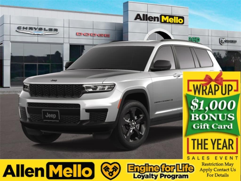 Allen Mello Chrysler Jeep Dodge Ram is proud to present you with another True Market Priced Vehicle. This 2025 Jeep Grand Cherokee L Altitude X is loaded with the following Factory Options: Quick Order Package 23M Altitude X (115V Auxiliary Power Outlet, 3rd Row Charge-Only USB Ports, Altitude X, Black Headliner, Capri Leatherette/Suede Seats, Delete Laredo Badge, Gloss Black Exterior Accents, Heated Front Seats, Heated Steering Wheel, Power Liftgate, Power Sunroof, Rain Sensitive Windshield Wipers, Remote Start System, Selectable Tire Fill Alert, Wheels: 18" x 8.0" Fully Painted Aluminum 1, and Wireless Charging Pad), Trailer Tow Package (180 Amp Alternator, 7 and 4 Pin Wiring Harness, Automatic Headlamp Leveling System, Class IV Receiver Hitch, Dual Exhaust Tips, Heavy-Duty Engine Cooling, Rear Load Leveling Suspension, and Trailer Hitch Zoom), 3.45 Rear Axle Ratio, 3rd row seats: split-bench, 4-Wheel Disc Brakes, 6 Speakers, ABS brakes, Air Conditioning, Alloy wheels, AM/FM radio: SiriusXM, Anti-whiplash front head restraints, Automatic temperature control, Brake assist, Bumpers: body-color, Cloth Seats, Compass, Delay-off headlights, Driver door bin, Driver vanity mirror, Dual front impact airbags, Dual front side impact airbags, Electronic Stability Control, Emergency communication system, Four wheel independent suspension, Front anti-roll bar, Front Bucket Seats, Front Center Armrest w/Storage, Front dual zone A/C, Front License Plate Bracket, Front reading lights, Fully automatic headlights, Heated door mirrors, Illuminated entry, Knee airbag, Low tire pressure warning, Manual Fold Seatbacks, Model Year Tracking, Normal Duty Suspension, Occupant sensing airbag, Outside temperature display, Overhead airbag, Overhead console, Panic alarm, ParkView Rear Back-Up Camera, Passenger door bin, Passenger vanity mirror, Power door mirrors, Power driver seat, Power steering, Power windows, Radio data system, Radio: Uconnect 5 with 8.4" Display, Rear air conditioning, Rear anti-roll bar, Rear reading lights, Rear window defroster, Rear window wiper, Reclining 3rd row seat, Remote keyless entry, Security system, Speed control, Speed-Sensitive Wipers, Split folding rear seat, Spoiler, Steering wheel mounted audio controls, Tachometer, Telescoping steering wheel, Tilt steering wheel, Traction control, Trip computer, Variably intermittent wipers, Voltmeter, Wheels: 18" x 8.0" Fully Painted Aluminum, and Wheels: 20" x 8.5" Gloss Black Painted Aluminum!! Discount includes a $1,000 Hospital, Military, Firefighters, Police or School Employees must show proof of employment. Price does not include tax, title, license, and document fees. Not all customers qualify for all rebates. Contact us for more information. Price includes: $2500 - 2025 National Retail Bonus Cash . Exp. 01/05/2026