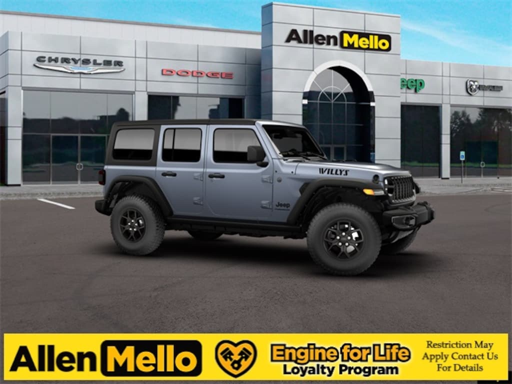 Allen Mello Chrysler Jeep Dodge Ram is proud to present you with another True Market Priced Vehicle. This 2026 Jeep Wrangler Willys is loaded with the following Factory Options: Convenience Group (2-Door Passive Entry, Front Door Locks, Air Conditioning with Auto Temp Control, Air Filtering, Cluster 7.0" TFT Color Display, Emergency/Assistance Call, Heated Front Seats, Heated Steering Wheel, and Universal Garage Door Opener), Quick Order Package 24W Willys (4-Wheel Drive Swing Gate Decal, 7 and 4 Pin Wiring Harness, Advanced Brake Assist, Automatic Headlamps, Auxiliary Switches, Black Grille with Gloss Black Rings, Class II Receiver Hitch, Conventional Differential Front Axle, Corning Gorilla Glass, Dana M210 Wide HD Tube Front Axle, Dana M220 Wide Rear Axle, Daytime Running Lamps LED Accents, Deep Tint Sunscreen Windows, E-Locker Rear Axle, Enhanced Adaptive Cruise Control, Front LED Fog Lamps, Full Speed Forward Collision Warning Plus, Injection Molded Black Rear Bumper, LED Premium Reflector Headlamps, Mold in Color Bumper with Gloss Black, Molded in Color Rubicon Highline Flare, MOPAR All-Weather Floor Mats, Off-Road Plus Mode, Power Heated Mirrors, Premium Wrapped Steering Wheel, Security Alarm, Sun Visors with Illuminated Vanity Mirrors, Wheels: 17" x 7.5" Painted Black, Willy's Suspension, and Willys Hood Decal), Safety Group (Auto High Beam Headlamp Control, Blind Spot and Cross Path Detection, LED Taillamps, and ParkSense Rear Park Assist System), Steel Power Dome Hood Package (Power Dome Dual Vented Hood), Xtreme 35 Tire Package (35" Tire Suspension, Anti-Lock 4-Wheel Disc Perf Brakes, MOPAR Hinge-Gate Reinforcement, MOPAR Jack Spacer, MOPAR Tire Relocation Kit, Wheel Flare Extensions, and Wheels: 17" x 8" Machined with Black Pockets), 12.3" Touchscreen Display, 4-Wheel Disc Brakes, 4G LTE Wi-Fi Hot Spot, 8 Speakers, ABS brakes, Air Conditioning, AM/FM radio: SiriusXM with 360L, Apple CarPlay, Apple CarPlay/Android Auto, Aux Battery, Black 3-Piece Hard Top, Brake assist, Compass, Connectivity - US/Canada, Delay-off headlights, Driver door bin, Driver vanity mirror, Dual front impact airbags, Dual front side impact airbags, Electronic Stability Control, For More Info, Call 800-643-2112, Freedom Panel Storage Bag, Front anti-roll bar, Front Bucket Seats, Front Center Armrest w/Storage, Front fog lights, Front reading lights, Google Android Auto, Illuminated entry, Integrated Center Stack Radio, Integrated roll-over protection, Low tire pressure warning, No Soft Top, Non-Lock Fuel Cap Without Discriminator, Normal Duty Suspension, Occupant sensing airbag, Outside temperature display, Overhead airbag, Panic alarm, ParkView Rear Back-Up Camera, Passenger door bin, Passenger vanity mirror, Power steering, Power windows, Radio data system, Radio: Uconnect 5 with 12.3" Display, Rear anti-roll bar, Rear reading lights, Rear Window Defroster, Rear Window Wiper/Washer, Remote keyless entry, SiriusXM Radio Service, SiriusXM with 360L, Speed control, Split folding rear seat, Steering wheel mounted audio controls, Stop-Start Dual Battery System, Tachometer, Telescoping steering wheel, Tilt steering wheel, Traction control, Trip computer, Variably intermittent wipers, and Wheels: 17" x 7.5" Black Steel Styled!!