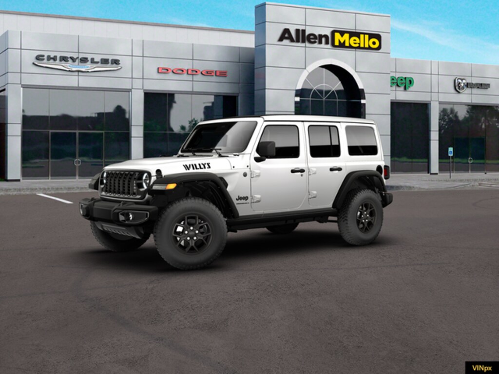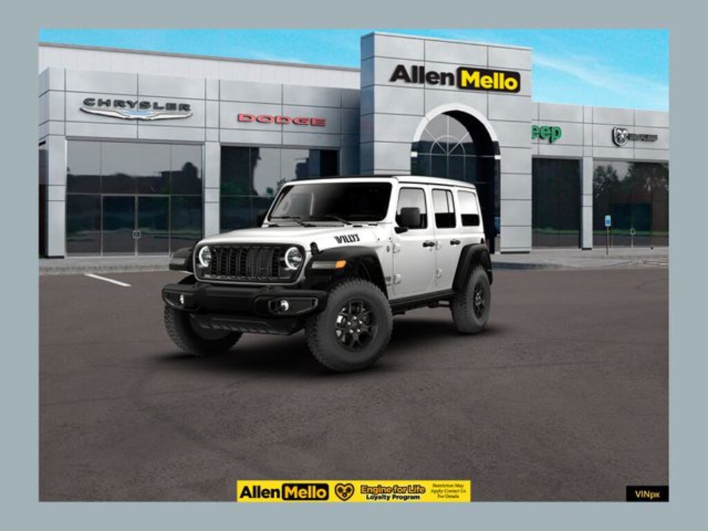 Allen Mello Chrysler Jeep Dodge Ram is proud to present you with another True Market Priced Vehicle. This 2026 Jeep Wrangler Willys is loaded with the following Factory Options: Convenience Group (2-Door Passive Entry, Front Door Locks, Air Conditioning with Auto Temp Control, Air Filtering, Cluster 7.0" TFT Color Display, Emergency/Assistance Call, Heated Front Seats, Heated Steering Wheel, and Universal Garage Door Opener), Quick Order Package 22W Willys (4-Wheel Drive Swing Gate Decal, 7 and 4 Pin Wiring Harness, Advanced Brake Assist, Automatic Headlamps, Auxiliary Switches, Black Grille with Gloss Black Rings, Class II Receiver Hitch, Conventional Differential Front Axle, Corning Gorilla Glass, Dana M210 Wide HD Tube Front Axle, Dana M220 Wide Rear Axle, Daytime Running Lamps LED Accents, Deep Tint Sunscreen Windows, E-Locker Rear Axle, Enhanced Adaptive Cruise Control, Front LED Fog Lamps, Full Speed Forward Collision Warning Plus, Increased Travel Export Tuned Suspension, Injection Molded Black Rear Bumper, LED Premium Reflector Headlamps, Mold in Color Bumper with Gloss Black, Molded in Color Rubicon Highline Flare, MOPAR All-Weather Floor Mats, Off-Road Plus Mode, Power Heated Mirrors, Premium Wrapped Steering Wheel, Security Alarm, Sun Visors with Illuminated Vanity Mirrors, Wheels: 17" x 7.5" Painted Black, and Willys Hood Decal), 12.3" Touchscreen Display, 4-Wheel Disc Brakes, 4G LTE Wi-Fi Hot Spot, 8 Speakers, ABS brakes, Air Conditioning, AM/FM radio: SiriusXM with 360L, Apple CarPlay, Apple CarPlay/Android Auto, Aux Battery, Brake assist, Compass, Connectivity - US/Canada, Delay-off headlights, Driver door bin, Driver vanity mirror, Dual front impact airbags, Dual front side impact airbags, Electronic Stability Control, For More Info, Call 800-643-2112, Front anti-roll bar, Front Bucket Seats, Front Center Armrest w/Storage, Front fog lights, Front reading lights, Google Android Auto, Illuminated entry, Integrated Center Stack Radio, Integrated roll-over protection, Low tire pressure warning, Non-Lock Fuel Cap Without Discriminator, Normal Duty Suspension, Occupant sensing airbag, Outside temperature display, Overhead airbag, Panic alarm, ParkView Rear Back-Up Camera, Passenger door bin, Passenger vanity mirror, Power steering, Power Top Quarter Window Storage Bag, Power windows, Radio data system, Radio: Uconnect 5 with 12.3" Display, Rear anti-roll bar, Rear reading lights, Rear Window Defroster, Rear Window Wiper/Washer, Remote keyless entry, Removable Rear Quarter Windows, SiriusXM Radio Service, SiriusXM with 360L, Sky One-Touch Power Top, Speed control, Split folding rear seat, Steering wheel mounted audio controls, Stop-Start Dual Battery System, Tachometer, Telescoping steering wheel, Tilt steering wheel, Traction control, Trip computer, Variably intermittent wipers, and Wheels: 17" x 7.5" Black Steel Styled!! Discount includes a $1,000 Hospital, Military, Firefighters, Police or School Employees must show proof of employment. Price does not include tax, title, license, and document fees. Not all customers qualify for all rebates. Contact us for more information. Price includes: $1000 - 2026 National Retail Bonus Cash . Exp. 03/31/2026