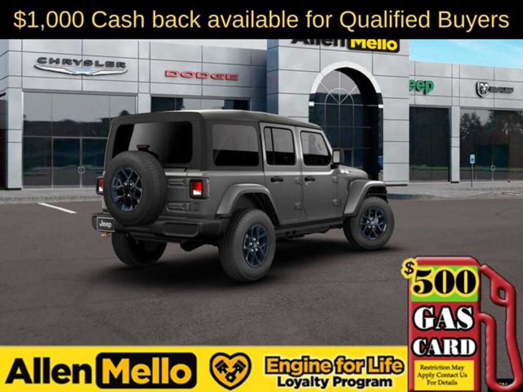 Allen Mello Chrysler Jeep Dodge Ram is proud to present you with another True Market Priced Vehicle. This 2026 Jeep Wrangler is loaded with the following Factory Options: Quick Order Package 22F 85th Anniversary Edition (2-Door Passive Entry, Front Door Locks, 85th Anniversary Group, 85th Cupholder Plaque, 85th Fender Decal, 85th Shifter Medallion, 85th Tailgate Decal, 85th Wrangler Hood Decal, Adaptive Cruise Control with Stop, Advanced Brake Assist, Air Conditioning with Auto Temp Control, Air Filtering, Alpine Premium Audio System, Anti-Lock 4-Wheel Disc Brakes, Automatic Headlamps, Berber Cargo Mats, Berber Floor Mats, Body Color Fenders Flares, Bronze Tow Hooks, Central ADAS Decision Module (CADM), Cloth Seat with Plaid Insert and Tag, Cluster 7.0" TFT Color Display, Corning Gorilla Glass, Daytime Running Lamps LED Accents, Deep Tint Sunscreen Windows, Emergency/Assistance Call, Front LED Fog Lamps, Full Speed Forward Collision Warning Plus, Gray/Bronze Trail Rated Badge, Heated Front Seats, Heated Steering Wheel, LED Premium Reflector Headlamps, Mayan Gold Interior Accents, Plaid Wrap Instrument Panel Mid-Bolster, Power Heated Mirrors, Premium Wrapped Steering Wheel, Security Alarm, Sun Visors with Illuminated Vanity Mirrors, Universal Garage Door Opener, and Wheels: 17" x 7.5" Steel Oxide), Safety Group (Auto High Beam Headlamp Control, Blind Spot and Cross Path Detection, Injection Molded Black Rear Bumper, LED Taillamps, and ParkSense Rear Park Assist System), 12.3" Touchscreen Display, 3.45 Overall Top Gear Ratio, 4-Wheel Disc Brakes, 4G LTE Wi-Fi Hot Spot, 8 Speakers, ABS brakes, Air Conditioning, AM/FM radio: SiriusXM with 360L, Apple CarPlay, Apple CarPlay/Android Auto, Aux Battery, Body Color 3-Piece Hard Top, Brake assist, Compass, Connectivity - US/Canada, Delay-off headlights, Driver door bin, Driver vanity mirror, Dual front impact airbags, Dual front side impact airbags, Electronic Stability Control, For More Info, Call 800-643-2112, Freedom Panel Storage Bag, Front anti-roll bar, Front Bucket Seats, Front Center Armrest w/Storage, Front fog lights, Front reading lights, Google Android Auto, Illuminated entry, Integrated Center Stack Radio, Integrated roll-over protection, Low tire pressure warning, Manufacture Statement of Origin, No Soft Top, Non-Lock Fuel Cap Without Discriminator, Normal Duty Suspension, Occupant sensing airbag, Outside temperature display, Overhead airbag, Panic alarm, ParkView Rear Back-Up Camera, Passenger door bin, Passenger vanity mirror, Power steering, Power windows, Radio data system, Radio: Uconnect 5 with 12.3" Display, Rear anti-roll bar, Rear reading lights, Rear Window Defroster, Rear Window Wiper/Washer, Remote keyless entry, SiriusXM Radio Service, SiriusXM with 360L, Speed control, Split folding rear seat, Steering wheel mounted audio controls, Stop-Start Dual Battery System, Tachometer, Telescoping steering wheel, Tilt steering wheel, Tractio Discount includes a $1,000 Hospital, Military, Firefighters, Police or School Employees must show proof of employment. Price does not include tax, title, license, and document fees. Not all customers qualify for all rebates. Contact us for more information. Price includes: $1000 - 2