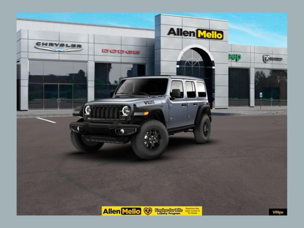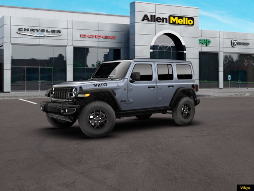 Allen Mello Chrysler Jeep Dodge Ram is proud to present you with another True Market Priced Vehicle. This 2026 Jeep Wrangler Willys is loaded with the following Factory Options: Convenience Group (2-Door Passive Entry, Front Door Locks, Air Conditioning with Auto Temp Control, Air Filtering, Cluster 7.0" TFT Color Display, Emergency/Assistance Call, Heated Front Seats, Heated Steering Wheel, and Universal Garage Door Opener), Quick Order Package 22W Willys (4-Wheel Drive Swing Gate Decal, 7 and 4 Pin Wiring Harness, Advanced Brake Assist, Automatic Headlamps, Auxiliary Switches, Black Grille with Gloss Black Rings, Class II Receiver Hitch, Conventional Differential Front Axle, Corning Gorilla Glass, Dana M210 Wide HD Tube Front Axle, Dana M220 Wide Rear Axle, Daytime Running Lamps LED Accents, Deep Tint Sunscreen Windows, E-Locker Rear Axle, Enhanced Adaptive Cruise Control, Front LED Fog Lamps, Full Speed Forward Collision Warning Plus, Increased Travel Export Tuned Suspension, Injection Molded Black Rear Bumper, LED Premium Reflector Headlamps, Mold in Color Bumper with Gloss Black, Molded in Color Rubicon Highline Flare, MOPAR All-Weather Floor Mats, Off-Road Plus Mode, Power Heated Mirrors, Premium Wrapped Steering Wheel, Security Alarm, Sun Visors with Illuminated Vanity Mirrors, Wheels: 17" x 7.5" Painted Black, and Willys Hood Decal), 12.3" Touchscreen Display, 4-Wheel Disc Brakes, 4G LTE Wi-Fi Hot Spot, 8 Speakers, ABS brakes, Air Conditioning, AM/FM radio: SiriusXM with 360L, Apple CarPlay, Apple CarPlay/Android Auto, Aux Battery, Brake assist, Compass, Connectivity - US/Canada, Delay-off headlights, Driver door bin, Driver vanity mirror, Dual front impact airbags, Dual front side impact airbags, Electronic Stability Control, For More Info, Call 800-643-2112, Front anti-roll bar, Front Bucket Seats, Front Center Armrest w/Storage, Front fog lights, Front reading lights, Google Android Auto, Illuminated entry, Integrated Center Stack Radio, Integrated roll-over protection, Jeep Trail Rated Kit, Low tire pressure warning, Non-Lock Fuel Cap Without Discriminator, Normal Duty Suspension, Occupant sensing airbag, Outside temperature display, Overhead airbag, Panic alarm, ParkView Rear Back-Up Camera, Passenger door bin, Passenger vanity mirror, Power steering, Power Top Quarter Window Storage Bag, Power windows, Radio data system, Radio: Uconnect 5 with 12.3" Display, Rear anti-roll bar, Rear reading lights, Rear Window Defroster, Rear Window Wiper/Washer, Remote keyless entry, Removable Rear Quarter Windows, SiriusXM Radio Service, SiriusXM with 360L, Sky One-Touch Power Top, Speed control, Split folding rear seat, Steering wheel mounted audio controls, Stop-Start Dual Battery System, Tachometer, Telescoping steering wheel, Tilt steering wheel, Traction control, Trip computer, Variably intermittent wipers, and Wheels: 17" x 7.5" Black Steel Styled!! Discount includes a $1,000 Hospital, Military, Firefighters, Police or School Employees must show proof of employment. Price does not include tax, title, license, and document fees. Not all customers qualify for all rebates. Contact us for more information. Price includes: $1000 - 2026 National Retail Bonus Cash . Exp. 04/30/2026 $2000 - 2026 National Select Inventory Bonus Cash. Exp. 01/04/2027