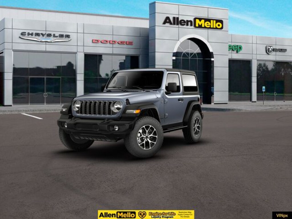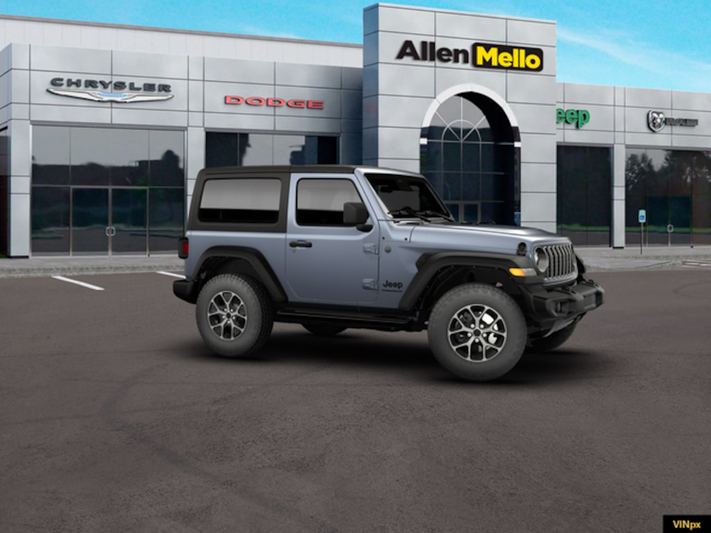 Allen Mello Chrysler Jeep Dodge Ram is proud to present you with another True Market Priced Vehicle. This 2026 Jeep Wrangler Sport S is loaded with the following Factory Options: Convenience Group (2-Door Passive Entry, Front Door Locks, Air Conditioning with Auto Temp Control, Air Filtering, Cluster 7.0" TFT Color Display, Emergency/Assistance Call, Heated Front Seats, Heated Steering Wheel, and Universal Garage Door Opener), Quick Order Package 22S Sport S (Advanced Brake Assist, Automatic Headlamps, Corning Gorilla Glass, Deep Tint Sunscreen Windows, Enhanced Adaptive Cruise Control, Full Speed Forward Collision Warning Plus, Power Heated Mirrors, Premium Wrapped Steering Wheel, Security Alarm, Sun Visors with Illuminated Vanity Mirrors, and Wheels: 17" x 7.5" Gray), 12.3" Touchscreen Display, 3.45 Overall Top Gear Ratio, 4-Wheel Disc Brakes, 4G LTE Wi-Fi Hot Spot, 8 Speakers, ABS brakes, Air Conditioning, AM/FM radio: SiriusXM with 360L, Apple CarPlay, Apple CarPlay/Android Auto, Aux Battery, Black 3-Piece Hard Top, Brake assist, Cloth Low-Back Bucket Seats, Compass, Connectivity - US/Canada, Delay-off headlights, Driver door bin, Driver vanity mirror, Dual front impact airbags, Dual front side impact airbags, Electronic Stability Control, For More Info, Call 800-643-2112, Freedom Panel Storage Bag, Front anti-roll bar, Front Bucket Seats, Front Center Armrest w/Storage, Front fog lights, Front reading lights, Google Android Auto, Illuminated entry, Integrated Center Stack Radio, Integrated roll-over protection, Low tire pressure warning, MOPAR All-Weather Floor Mats, Mopar Black Tubular Side Steps, MOPAR Cargo Tub Liner, MOPAR Hardtop Headliner, MOPAR Plastic Door Sill Guards, Myflexcare Service Plan, Non-Lock Fuel Cap Without Discriminator, Normal Duty Suspension, Occupant sensing airbag, Outside temperature display, Overhead airbag, Panic alarm, ParkView Rear Back-Up Camera, Passenger door bin, Passenger vanity mirror, Power steering, Power windows, Radio data system, Radio: Uconnect 5 with 12.3" Display, Rear anti-roll bar, Rear reading lights, Rear Window Defroster, Rear Window Wiper/Washer, Remote keyless entry, SiriusXM Radio Service, SiriusXM with 360L, Speed control, Steering wheel mounted audio controls, Stop-Start Dual Battery System, Tachometer, Telescoping steering wheel, Tilt steering wheel, Traction control, Trip computer, Variably intermittent wipers, Wheels: 17" x 7.5" Black Steel Styled, and Wheels: 17" x 7.5" Machined with Black Pockets!!