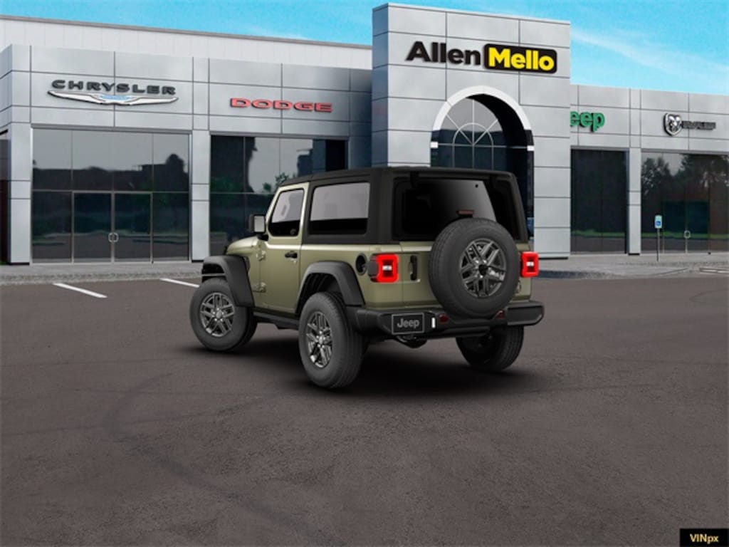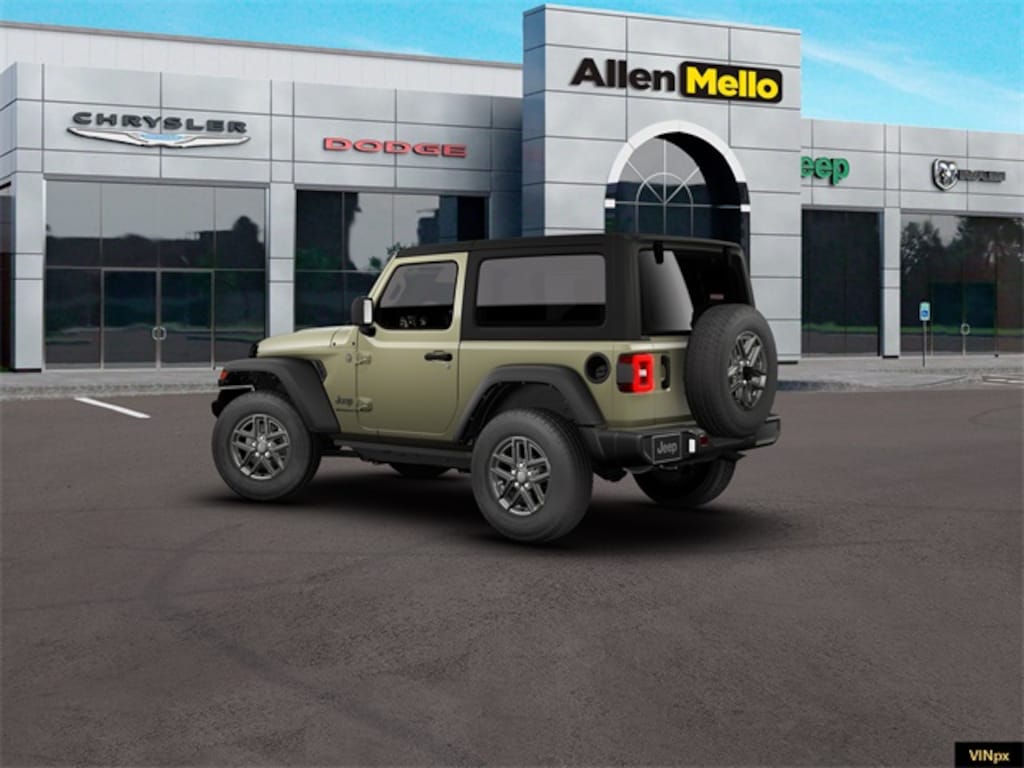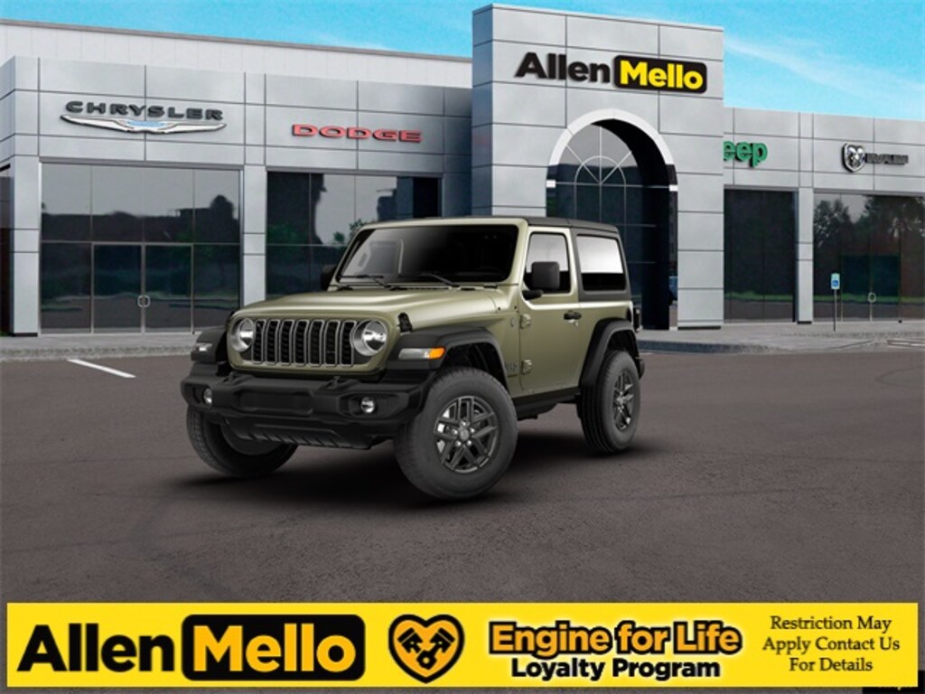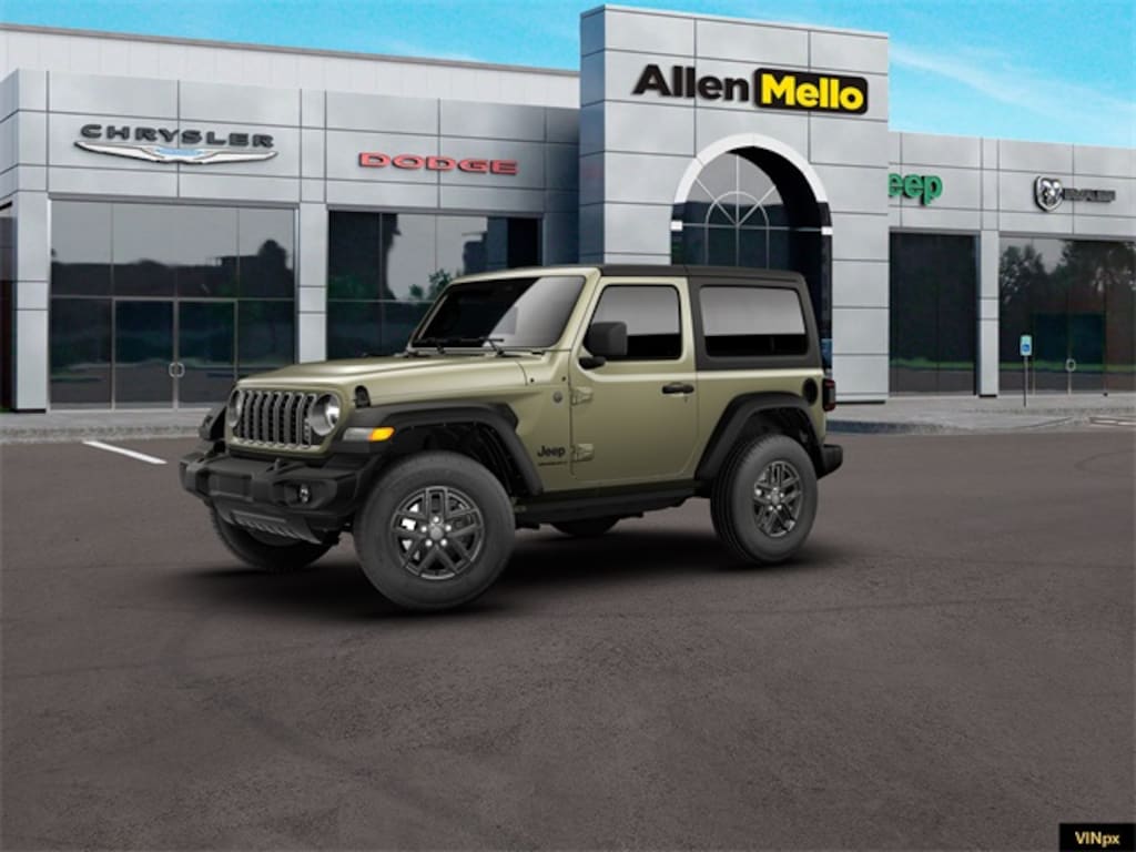 Allen Mello Chrysler Jeep Dodge Ram is proud to present you with another True Market Priced Vehicle. This 2026 Jeep Wrangler Sport S is loaded with the following Factory Options: Convenience Group (2-Door Passive Entry, Front Door Locks, Air Conditioning with Auto Temp Control, Air Filtering, Cluster 7.0" TFT Color Display, Emergency/Assistance Call, Heated Front Seats, Heated Steering Wheel, and Universal Garage Door Opener), Quick Order Package 22S Sport S (Advanced Brake Assist, Automatic Headlamps, Corning Gorilla Glass, Deep Tint Sunscreen Windows, Enhanced Adaptive Cruise Control, Full Speed Forward Collision Warning Plus, Power Heated Mirrors, Premium Wrapped Steering Wheel, Security Alarm, Sun Visors with Illuminated Vanity Mirrors, and Wheels: 17" x 7.5" Gray), Safety Group (Auto High Beam Headlamp Control, Blind Spot and Cross Path Detection, Injection Molded Black Rear Bumper, LED Taillamps, and ParkSense Rear Park Assist System), 12.3" Touchscreen Display, 3.45 Overall Top Gear Ratio, 4-Wheel Disc Brakes, 4G LTE Wi-Fi Hot Spot, 8 Speakers, ABS brakes, Air Conditioning, AM/FM radio: SiriusXM with 360L, Apple CarPlay, Apple CarPlay/Android Auto, Aux Battery, Black 3-Piece Hard Top, Brake assist, Cloth Low-Back Bucket Seats, Compass, Connectivity - US/Canada, Delay-off headlights, Driver door bin, Driver vanity mirror, Dual front impact airbags, Dual front side impact airbags, Electronic Stability Control, For More Info, Call 800-643-2112, Freedom Panel Storage Bag, Front anti-roll bar, Front Bucket Seats, Front Center Armrest w/Storage, Front fog lights, Front reading lights, Google Android Auto, Illuminated entry, Integrated Center Stack Radio, Integrated roll-over protection, Low tire pressure warning, MOPAR All-Weather Floor Mats, Myflexcare Service Plan, Non-Lock Fuel Cap Without Discriminator, Normal Duty Suspension, Occupant sensing airbag, Outside temperature display, Overhead airbag, Panic alarm, ParkView Rear Back-Up Camera, Passenger door bin, Passenger vanity mirror, Power steering, Power windows, Radio data system, Radio: Uconnect 5 with 12.3" Display, Rear anti-roll bar, Rear reading lights, Rear Window Defroster, Rear Window Wiper/Washer, Remote keyless entry, SiriusXM Radio Service, SiriusXM with 360L, Speed control, Steering wheel mounted audio controls, Stop-Start Dual Battery System, Tachometer, Telescoping steering wheel, Tilt steering wheel, Traction control, Trip computer, Variably intermittent wipers, and Wheels: 17" x 7.5" Black Steel Styled!!
