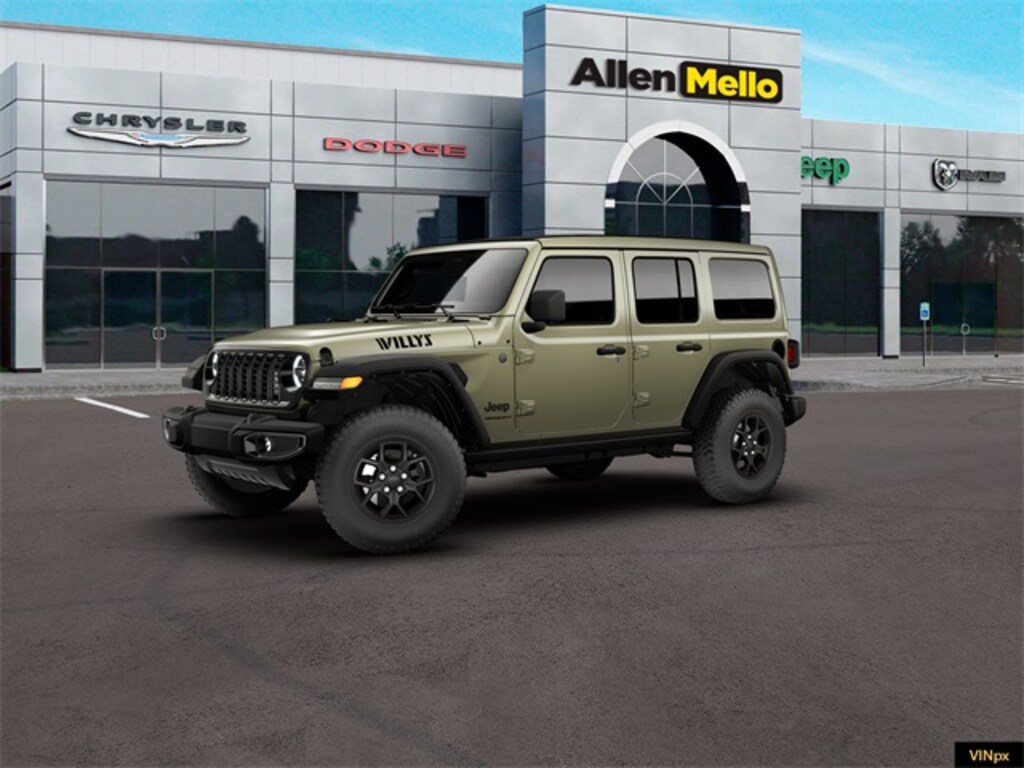 Allen Mello Chrysler Jeep Dodge Ram is proud to present you with another True Market Priced Vehicle. This 2026 Jeep Wrangler Willys is loaded with the following Factory Options: Convenience Group (2-Door Passive Entry, Front Door Locks, Air Conditioning with Auto Temp Control, Air Filtering, Cluster 7.0" TFT Color Display, Emergency/Assistance Call, Heated Front Seats, Heated Steering Wheel, and Universal Garage Door Opener), Quick Order Package 24W Willys (4-Wheel Drive Swing Gate Decal, 7 and 4 Pin Wiring Harness, Advanced Brake Assist, Automatic Headlamps, Auxiliary Switches, Black Grille, Class II Receiver Hitch, Conventional Differential Front Axle, Corning Gorilla Glass, Dana M210 Wide HD Tube Front Axle, Dana M220 Wide Rear Axle, Daytime Running Lamps LED Accents, Deep Tint Sunscreen Windows, E-Locker Rear Axle, Enhanced Adaptive Cruise Control, Front LED Fog Lamps, Full Speed Forward Collision Warning Plus, Injection Molded Black Rear Bumper, LED Premium Reflector Headlamps, Mold in Color Bumper with Gloss Black, Molded in Color Rubicon Highline Flare, MOPAR All-Weather Floor Mats, Off-Road Plus Mode, Power Heated Mirrors, Premium Wrapped Steering Wheel, Security Alarm, Sun Visors with Illuminated Vanity Mirrors, Wheels: 17" x 7.5" Painted Black, Willy's Suspension, and Willys Hood Decal), Xtreme 35 Tire Package (35" Tire Suspension, Anti-Lock 4-Wheel Disc Perf Brakes, MOPAR Hinge-Gate Reinforcement, MOPAR Jack Spacer, MOPAR Tire Relocation Kit, Wheel Flare Extensions, and Wheels: 17" x 8" Machined with Black Pockets), 12.3" Touchscreen Display, 4-Wheel Disc Brakes, 4G LTE Wi-Fi Hot Spot, 8 Speakers, ABS brakes, Air Conditioning, AM/FM radio: SiriusXM with 360L, Apple CarPlay, Apple CarPlay/Android Auto, Aux Battery, Brake assist, Cloth Low-Back Bucket Seats, Compass, Connectivity - US/Canada, Delay-off headlights, Driver door bin, Driver vanity mirror, Dual front impact airbags, Dual front side impact airbags, Electronic Stability Control, For More Info, Call 800-643-2112, Front anti-roll bar, Front Bucket Seats, Front Center Armrest w/Storage, Front fog lights, Front reading lights, Google Android Auto, Illuminated entry, Integrated Center Stack Radio, Integrated roll-over protection, Low tire pressure warning, MOPAR Cargo Tub Liner, MOPAR Plastic Door Sill Guards, Myflexcare Service Plan, Non-Lock Fuel Cap Without Discriminator, Normal Duty Suspension, Occupant sensing airbag, Outside temperature display, Overhead airbag, Panic alarm, ParkView Rear Back-Up Camera, Passenger door bin, Passenger vanity mirror, Power steering, Power Top Quarter Window Storage Bag, Power windows, Radio data system, Radio: Uconnect 5 with 12.3" Display, Rear anti-roll bar, Rear reading lights, Rear Window Defroster, Rear Window Wiper/Washer, Remote keyless entry, Removable Rear Quarter Windows, SiriusXM Radio Service, SiriusXM with 360L, Sky 1-Touch Power Top, Speed control, Split folding re Discount includes a $1,000 Hospital, Military, Firefighters, Police or School Employees must show proof of employment. Price does not include tax, title, license, and document fees. Not all customers qualify for all rebates. Contact us for more information. Price includes: $5500 - 2026 National Se