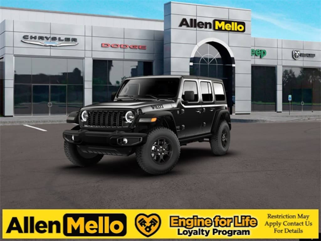 Allen Mello Chrysler Jeep Dodge Ram is proud to present you with another True Market Priced Vehicle. This 2026 Jeep Wrangler Willys is loaded with the following Factory Options: Convenience Group (2-Door Passive Entry, Front Door Locks, Air Conditioning with Auto Temp Control, Air Filtering, Cluster 7.0" TFT Color Display, Emergency/Assistance Call, Heated Front Seats, Heated Steering Wheel, and Universal Garage Door Opener), Quick Order Package 24W Willys (4-Wheel Drive Swing Gate Decal, 7 and 4 Pin Wiring Harness, Advanced Brake Assist, Automatic Headlamps, Auxiliary Switches, Black Grille, Class II Receiver Hitch, Conventional Differential Front Axle, Corning Gorilla Glass, Dana M210 Wide HD Tube Front Axle, Dana M220 Wide Rear Axle, Daytime Running Lamps LED Accents, Deep Tint Sunscreen Windows, E-Locker Rear Axle, Enhanced Adaptive Cruise Control, Front LED Fog Lamps, Full Speed Forward Collision Warning Plus, Injection Molded Black Rear Bumper, LED Premium Reflector Headlamps, Mold in Color Bumper with Gloss Black, Molded in Color Rubicon Highline Flare, MOPAR All-Weather Floor Mats, Off-Road Plus Mode, Power Heated Mirrors, Premium Wrapped Steering Wheel, Security Alarm, Sun Visors with Illuminated Vanity Mirrors, Wheels: 17" x 7.5" Painted Black, Willy's Suspension, and Willys Hood Decal), 12.3" Touchscreen Display, 4-Wheel Disc Brakes, 4G LTE Wi-Fi Hot Spot, 8 Speakers, ABS brakes, Air Conditioning, AM/FM radio: SiriusXM with 360L, Apple CarPlay, Apple CarPlay/Android Auto, Aux Battery, Black 3-Piece Hard Top, Brake assist, Cloth Low-Back Bucket Seats, Compass, Connectivity - US/Canada, Delay-off headlights, Driver door bin, Driver vanity mirror, Dual front impact airbags, Dual front side impact airbags, Electronic Stability Control, For More Info, Call 800-643-2112, Freedom Panel Storage Bag, Front anti-roll bar, Front Bucket Seats, Front Center Armrest w/Storage, Front fog lights, Front reading lights, Google Android Auto, Illuminated entry, Integrated Center Stack Radio, Integrated roll-over protection, Low tire pressure warning, Non-Lock Fuel Cap Without Discriminator, Normal Duty Suspension, Occupant sensing airbag, Outside temperature display, Overhead airbag, Panic alarm, ParkView Rear Back-Up Camera, Passenger door bin, Passenger vanity mirror, Power steering, Power windows, Radio data system, Radio: Uconnect 5 with 12.3" Display, Rear anti-roll bar, Rear reading lights, Rear Window Defroster, Rear Window Wiper/Washer, Remote keyless entry, SiriusXM Radio Service, SiriusXM with 360L, Speed control, Split folding rear seat, Steering wheel mounted audio controls, Stop-Start Dual Battery System, Tachometer, Telescoping steering wheel, Tilt steering wheel, Traction control, Trip computer, Variably intermittent wipers, and Wheels: 17" x 7.5" Black Steel Styled!! Discount includes a $1,000 Hospital, Military, Firefighters, Police or School Employees must show proof of employment. Price does not include tax, title, license, and document fees. Not all customers qualify for all rebates. Contact us for more information. Price includes: $2500 - 2026 National Select Inventory Bonus Cash. Exp. 01/05/2026