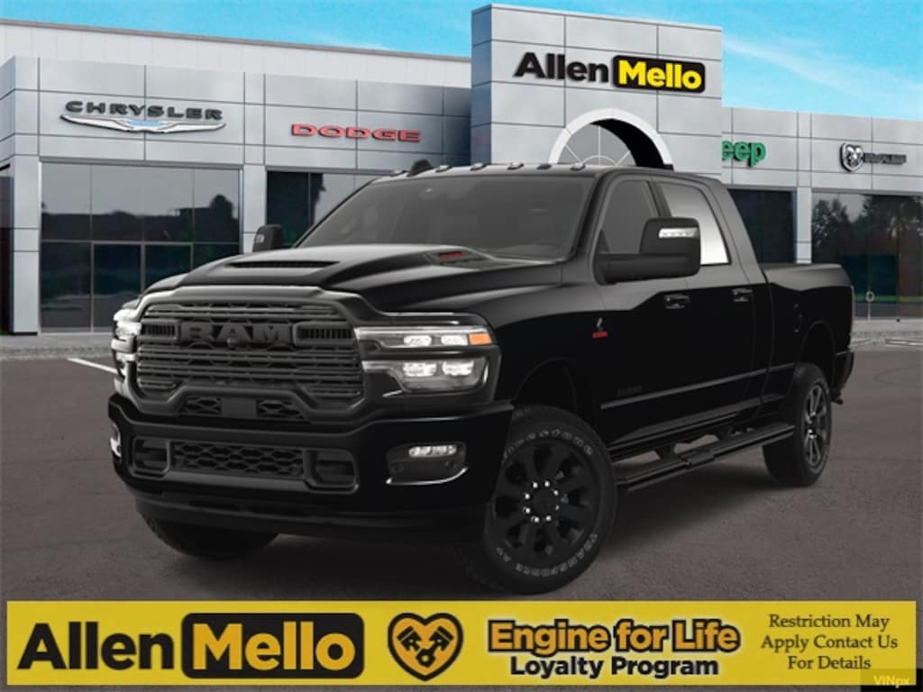 Allen Mello Chrysler Jeep Dodge Ram is proud to present you with another True Market Priced Vehicle. This 2025 Ram 2500 Laramie is loaded with the following Factory Options: Cold Weather Group (Engine Block Heater and MOPAR Winter Front Grille Cover), Laramie Level 1 Plus Equipment Group (#1 Seat Foam Cushion, 115V Auxiliary Rear Power Outlet, 2 Way Rear Headrest Seat, 4 Way Front Headrests, Active Lane Management System, Adaptive Steering System, Anti-Spin Differential Rear Axle, Auto Adjust In Reverse Exterior Mirrors, Auto Dim Exterior Mirror, Auto High Beam Headlamp Control, Auto Power-Folding Mirrors, Auto-Dimming Exterior Passenger Mirror, Bucket Seats, Center Stop Lamp w/Cargo View Camera, Drowsy Driver Detection, Dual Wireless Charging Pad, Exterior Mirrors Courtesy Lamps, Exterior Mirrors w/Heating Element, Exterior Mirrors w/Memory, Exterior Mirrors w/Supplemental Signals, Foam Bottle Insert (Door Trim Panel), Forward & Reverse Utility Lights, Front Seat Back Map Pockets, Full Length Upgraded Floor Console, Heated Front Seats, Heated Steering Wheel, High Back Seats, Leather Trimmed Bucket Seats, LED Bed Lighting, Mirror Running Lights, MOPAR Deployable Bed Step, MOPAR Spray In Bedliner, Power 2-Way Driver Lumbar Adjust, Power 2-Way Passenger Lumbar Adjust, Power Adjust 8-Way Driver Seat, Power Adjust 8-Way Front Passenger Seat, Power Adjust Mirrors, Power Adjustable Convex Aux Mirrors, Power Adjustable Pedals w/Memory, Power Heated Fold Telescope Mirrors w/Memory, Power Telescoping Mirrors, Radio/Driver Seat/Mirrors/Pedals Memory, Rain Sensitive Windshield Wipers, Rear 60/40 Folding Seat, Remote Tailgate Release, Traffic Sign Recognition, and Ventilated Front Seats), Night Edition (Black Exterior Truck Badging, Black Wheel Center Hub, Body Color Grille Surround, Gloss Black Grille Billets/Accents, Sport Performance Hood, and Wheels: 20" x 8" Black Painted Aluminum), Quick Order Package 24H Laramie, 10 Speakers, 3.42 Axle Ratio, 4-Wheel Disc Brakes, 4G LTE Wi-Fi Hot Spot, ABS brakes, Air Conditioning, Alexa Built-In, Alloy wheels, AM/FM radio: SiriusXM with 360L, Apple CarPlay, Apple CarPlay/Android Auto, Auto-dimming Rear-View mirror, Automatic temperature control, Brake assist, Bumpers: body-color, Center Hub, Chrome Exterior Mirrors, Clearance Lamps, Compass, Connected Travel & Traffic Services, Connectivity - US/Canada, Delay-off headlights, Disassociated Touchscreen Display, Driver door bin, Driver vanity mirror, Dual front impact airbags, Dual front side impact airbags, Electronic Stability Control, Emergency Vehicle Alert System (EVAS), Front anti-roll bar, Front Center Armrest w/Storage, Front dual zone A/C, Front fog lights, Front License Plate Bracket, Front reading lights, Fully automatic headlights, Garage door transmitter, Global Telematics Box Module (TBM), Google Android Auto, GPS Antenna Input, GPS Navigation, HD Radio, Heated door mirrors, Heated front seats, Heated steering wheel, Illuminated entry, Integrated Voice Command w/Bluetooth, Leather Trim 40/20/40 Bench Seat, Low tire pressure warning, Manufacturer's Statement of Origin, Discount includes a $1,000 Hospital, Military, Firefighters, Police or School Employees must show proof of employment. Price does not include tax, title, license, and document fees. Not all customers qualify for all rebates. Contact us for more information. Price includes: $2000 - 2025 N