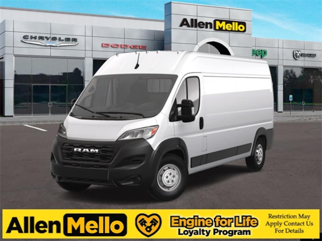 Allen Mello Chrysler Jeep Dodge Ram is proud to present you with another True Market Priced Vehicle. This 2025 Ram ProMaster 2500 High Roof is loaded with the following Factory Options: Quick Order Package 22B Tradesman w/Pass Seat (4-Way Manual Adjust Front Passenger Seat and Passenger Bucket Seat), Safety Group (Blind Spot & Cross Path Detection, Digital Rearview Mirror w/Autodim, Intelligent Speed Assist (ISA), Lane Departure Warning Plus, and ParkSense Front/Rear Park Assist System), Storage Group (Cargo Net, Shelf Above Roof Trim, and Underseat Storage Tray), 4 Speakers, 4-Wheel Disc Brakes, 4.08 Axle Ratio, 4G LTE Wi-Fi Hotspot, ABS brakes, Adaptive Cruise Control w/Stop & Go, Air Conditioning, AM/FM radio: SiriusXM, Apple CarPlay, Apple CarPlay/Android Auto, Black/Gray Seats, Bodyside moldings, Brake assist, Cargo Partition w/Sliding Window, Cloth Bucket Seats, Connectivity - US/Canada, Driver door bin, Driver Seat Armrest, Driver's Seat Mounted Armrest, Electronic Stability Control, Exterior Mirrors w/Supplemental Signals, For Details, Visit DriveUconnect.com, For More Info, Call 800-643-2112, Front anti-roll bar, Front Bucket Seats, Front License Plate Bracket, Front reading lights, Front wheel independent suspension, Global Telematics Box Module (TBM), Google Android Auto, GPS Antenna Input, Heavy Duty Suspension, Illuminated entry, Low tire pressure warning, Manufacturer's Statement of Origin, MOPAR Cargo Area LED Lighting, MOPAR Rear Assist Handles, Outside temperature display, Overhead airbag, Overhead console, ParkView Rear Back-Up Camera, Passenger door bin, Passenger Double Seat, Power steering, Power windows, Radio: Uconnect 5 w/7" Display, Remote keyless entry, SiriusXM Radio Service, Steering wheel mounted audio controls, Tachometer, Telescoping steering wheel, Traction control, Trip computer, Turn signal indicator mirrors, Variably intermittent wipers, Wheel Center Cap, and Wheels: 16" x 6.0" Steel!! Discount includes a $1,000 Hospital, Military, Firefighters, Police or School Employees must show proof of employment. Price does not include tax, title, license, and document fees. Not all customers qualify for all rebates. Contact us for more information. Price includes: $5000 - 2025 National Bonus Cash . Exp. 02/02/2026