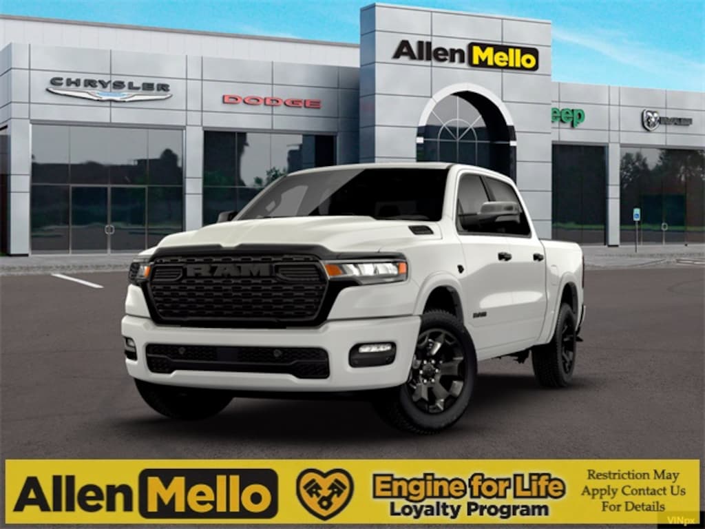 Allen Mello Chrysler Jeep Dodge Ram is proud to present you with another True Market Priced Vehicle. This 2026 Ram 1500 Big Horn/Lone Star is loaded with the following Factory Options: Bed Utility Group (Exterior 115V AC Outlet, MOPAR 4 Adjustable Cargo Tie-Down Hooks, MOPAR Spray In Bedliner, and Pick-Up Box Lighting), Big Horn Level 2 Equipment Group (115V Auxiliary Power Outlet, 115V Auxiliary Rear Power Outlet, 12" Touchscreen Display, 2nd Row In Floor Storage Bins, 3 Rear Seat Head Restraints, 4 Way Front Headrests, 400W Inverter, 4G LTE Wi-Fi Hot Spot, 9 Amplified Speakers w/Subwoofer, Air Conditioning ATC w/Dual Zone Control, Apple CarPlay, Auto Power-Folding Mirrors, Auto-Dimming Exterior Driver Mirror, Auto-Dimming Rear-View Mirror, Black Exterior Mirrors, Black Premium Power Mirrors, Body Color Fender Flares, Bucket Seats, Center Console Parts Module, Cluster 7.0" TFT Color Display, Configurable Drive Mode, Connected Travel & Traffic Services, Connectivity - US/Canada, Convex Wide-Angle Exterior Mirror Insert, Deluxe Cloth Bucket Seats, Disassociated Touchscreen Display, Exterior Mirrors Courtesy Lamps, Exterior Mirrors w/Heating Element, Exterior Mirrors w/Supplemental Signals, Front Seat Back Map Pockets, Full Length Floor Console, Global Telematics Box Module (TBM), Glove Box Lamp, Google Android Auto, GPS Antenna Input, GPS Navigation, HD Radio, Heated Front Seats, Heated Steering Wheel, Integrated Center Stack Radio, Integrated Voice Command w/Bluetooth, Leather Wrapped Steering Wheel, LED Dome Lamp w/On/Off Switch, LED Footwell Lighting, Manual Adjust 4-Way Front Passenger Seat, Media Hub w/2 Charge Only USBs, Overhead LED Lamps, Power 2-Way Driver Lumbar Adjust, Power Adjust 8-Way Driver Seat, Power Adjustable Pedals, Premium Overhead Console, Radio: Uconnect 5 Nav w/12.0" Display, Rear 60/40 Folding Seat, Rear Center Armrest, Rear Power Sliding Window, Rear Window Defroster, Remote Tailgate Release, Secondary Active Grille Shutters, Security Alarm, SiriusXM Radio Service, SiriusXM w/360L, Steering Wheel Mounted Audio Controls, Sun Visors w/Illuminated Vanity Mirrors, Universal Garage Door Opener, USB Host Flip, Wheels: 20" x 9" Aluminum Chrome Clad (WRK), and Wireless Charging Pad), Night Edition (Accent Color Door Handles, Accent Color Premium Power Mirrors, Accent Color Tailgate Handle, Anti-Spin Differential Rear Axle, Black Exterior Truck Badging, Black Headlamp Bezels, Black Interior Accents, Black Painted Exterior Mirrors Caps, Black Tail Lamp Bezels, Body Color Front Bumper, Body Color Rear Bumper w/Step Pads, Dual Exhaust w/Black Tips, Grille Black Surround Black Mesh, RAM Grille Badge - Black, and Wheels: 20" x 9.0" Aluminum Painted Clad), Quick Order Package 27Z Big Horn, 33 Gallon Fuel Tank, 4-Wheel Disc Brakes, 48V Belt Starter Generator, 6 Speakers, ABS brakes, Air Conditioning, Alloy wheels, AM/FM radio, Apple CarPlay/Android Auto, Auto High-beam Headlights, Brake assist, Bumpers: chrome, Cloth Bucket Seats, Compass, Delay-off headlights, Dome Dual LED Reading Lam Discount includes a $1,000 Hospital, Military, Firefighters, Police or School Employees must show proof of employment. Price does not include tax, title, license, and document fees. Not all customers qualify for all rebates. Contact us for more information. Price includes: $3500 - 2026 Natio