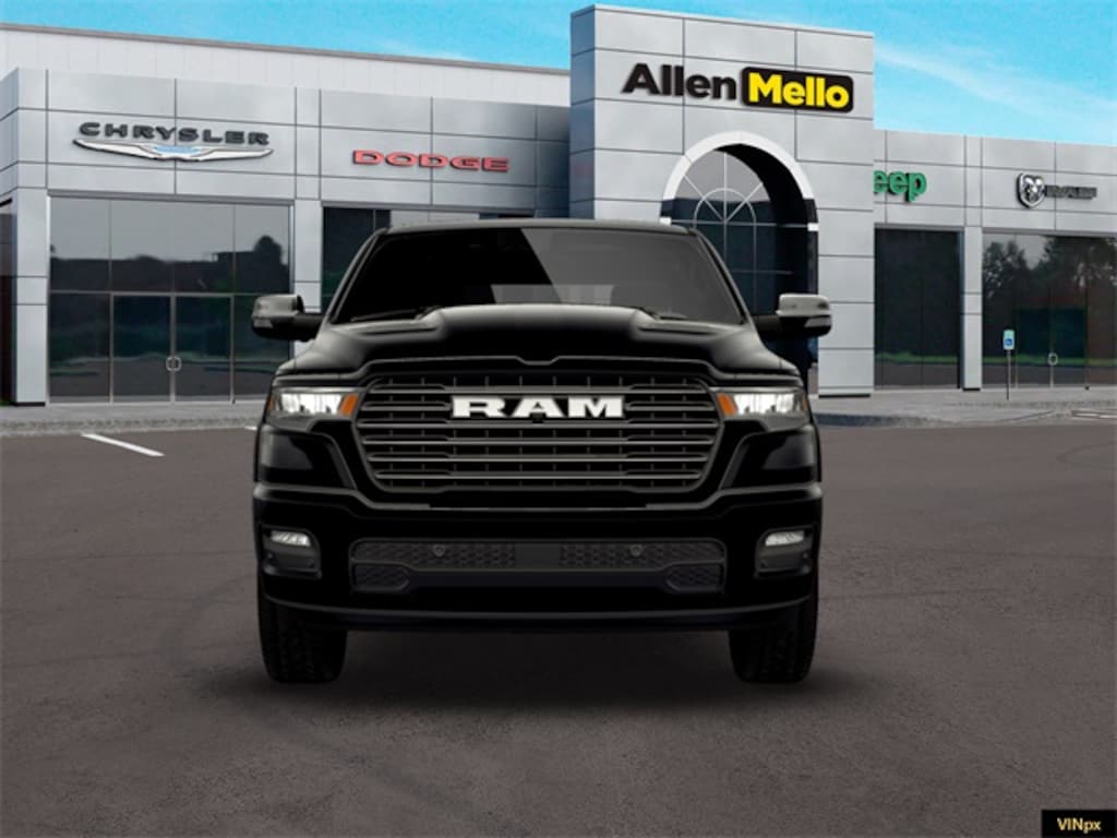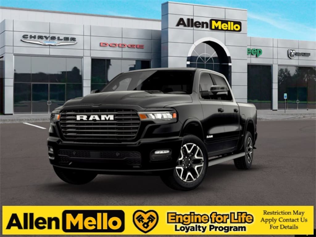 Allen Mello Chrysler Jeep Dodge Ram is proud to present you with another True Market Priced Vehicle. This 2026 Ram 1500 Laramie is loaded with the following Factory Options: Bed Utility Group (Exterior 115V AC Outlet, MOPAR 4 Adjustable Cargo Tie-Down Hooks, and MOPAR Spray in Bedliner), Laramie Level 1 Equipment Group (Rain Sensitive Windshield Wipers and Remote Tailgate Release), Quick Order Package 21H Laramie, Sport Appearance Package (Accent Color Premium Power Mirrors, Auto Power-Folding Mirrors, Auto-Dimming Exterior Driver Mirror, Black Interior Accents, Black Painted Exterior Mirrors Caps, Body Color Front Bumper, Body Color Rear Bumper with Step Pads, Bridgestone Brand Tires, Convex Wide-Angle Exterior Mirror Insert, Exterior Mirrors Courtesy Lamps, Exterior Mirrors with Heating Element, Exterior Mirrors with Memory, Exterior Mirrors with Supplemental Signals, Grille Surround 3 Body Color Tex 2 Black, RAM Grille Badge - Chrome, and Sport Performance Hood), 10 Speakers, 3.55 Rear Axle Ratio, 4-Wheel Disc Brakes, 4G LTE Wi-Fi Hot Spot, ABS brakes, Active Noise Control System, Air Conditioning, Alloy wheels, AM/FM radio: SiriusXM with 360L, Apple CarPlay/Android Auto, Audio memory, Auto High-beam Headlights, Auto-dimming door mirrors, Auto-dimming Rear-View mirror, Automatic temperature control, Brake assist, Bumpers: chrome, Chrome Exterior Mirrors, Compass, Connected Travel and Traffic Services, Connectivity - US/Canada, Delay-off headlights, Dome Dual LED Reading Lamp, Driver door bin, Driver vanity mirror, Dual front impact airbags, Dual front side impact airbags, Dual-Pane Panoramic Sunroof, Electronic Stability Control, Front anti-roll bar, Front Bucket Seats, Front Center Armrest w/Storage, Front dual zone A/C, Front fog lights, Front License Plate Bracket, Front reading lights, Front wheel independent suspension, Fully automatic headlights, Garage door transmitter, GPS Navigation, Heated door mirrors, Heated front seats, Heated rear seats, Heated steering wheel, Illuminated entry, Integrated Center Stack Radio, Integrated Voice Command with Bluetooth, Leather steering wheel, Leather Trimmed Bucket Seats, LED Dome/Reading Lamp, Low tire pressure warning, Manufacturer's Statement of Origin, Memory seat, MOPAR Front and Rear Rubber Floor Mats, Navigation System, Occupant sensing airbag, Off-Road Information Pages, Outside temperature display, Overhead airbag, Overhead console, Panic alarm, ParkView Rear Back-Up Camera, Passenger door bin, Passenger vanity mirror, Power door mirrors, Power driver seat, Power passenger seat, Power steering, Power windows, Radio data system, Radio: Uconnect 5 Navigation with 12.0" Display, Rear anti-roll bar, Rear reading lights, Rear seat center armrest, Rear step bumper, Rear Wheelhouse Liners, Remote keyless entry, Security system, SiriusXM Radio Service, SiriusXM with 360L, Speed control, Split folding rear seat, Steering wheel mounted audio controls, Tachometer, Telescoping steering wheel, Tilt steering wheel, Traction control, Trip computer, Turn signal indicator mirrors, USB Host Flip, Variably inter Discount includes a $1,000 Hospital, Military, Firefighters, Police or School Employees must show proof of employment. Price does not include tax, title, license, and document fees. Not all customers qualify for all rebates. Contact us for more information. Price includes: $3500 - 2026 National Re