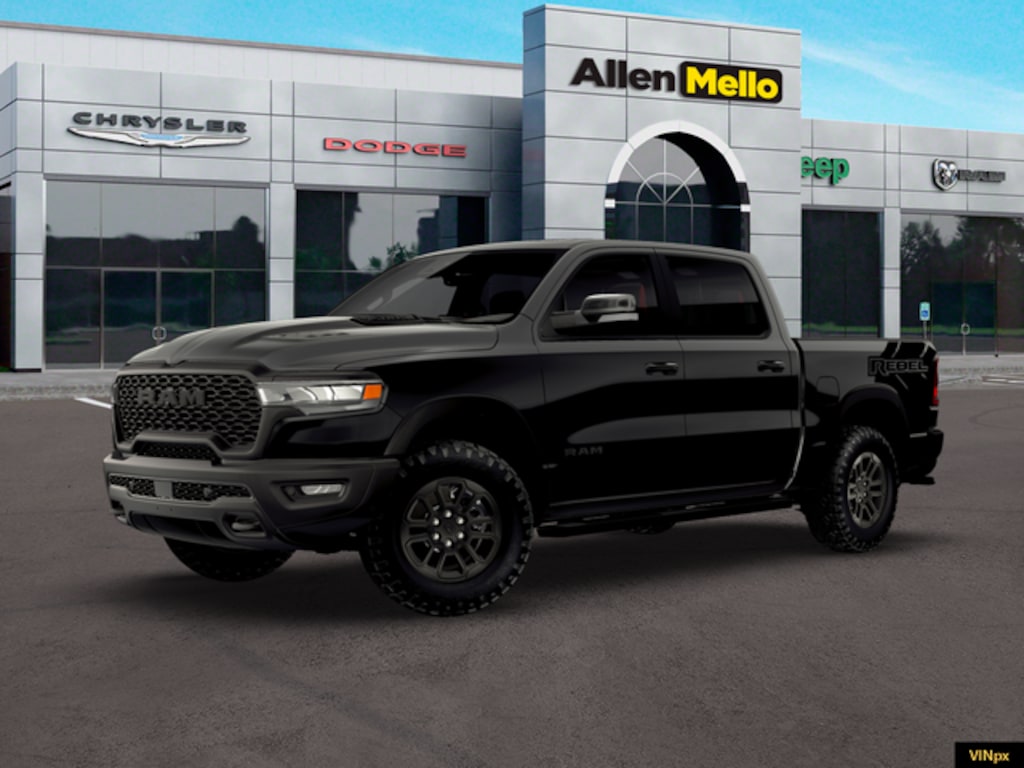 Allen Mello Chrysler Jeep Dodge Ram is proud to present you with another True Market Priced Vehicle. This 2026 Ram 1500 Rebel is loaded with the following Factory Options: Bed Utility Group (Exterior 115V AC Outlet, MOPAR 4 Adjustable Cargo Tie-Down Hooks, and MOPAR Spray in Bedliner), Quick Order Package 21W Rebel, Rebel Level 2 Equipment Group (115V Auxiliary Rear Power Outlet, 14.4" Touchscreen Display, 2-Door Passive Entry, Front Door Locks, 4G LTE Wi-Fi Hot Spot, Accent Color Door Handles, Accent Color Premium Power Mirrors, Accent Color Tailgate Handle, Apple CarPlay, Auto Power-Folding Mirrors, Auto-Dimming Exterior Driver Mirror, Black Painted Exterior Mirrors Caps, Connected Travel and Traffic Services, Connectivity - US/Canada, Convex Wide-Angle Exterior Mirror Insert, Disassociated Touchscreen Display, Driver Seat Memory, Dual Wireless Charging Pad, Exterior Mirrors Approach Lamps, Exterior Mirrors Courtesy Lamps, Exterior Mirrors with Heating Element, Exterior Mirrors with Memory, Exterior Mirrors with Supplemental Signals, Front Passenger Interactive Display, Global Telematics Box Module, Google Android Auto, GPS Antenna Input, GPS Navigation, Harman/Kardon 19 Speaker Premium Sound, HD Radio, Heated Second Row Seats, Integrated Center Stack Radio, Integrated Voice Command with Bluetooth, Media Hub with 2 Charge Only USBs, Off-Road Information Pages, Power 2-Way Passenger Lumbar Adjust, Power Adjust 8-Way Front Passenger Seat, Power Adjustable Pedals with Memory, Power Tailgate, Proximity Approach/Departure Lamps, Radio: Uconnect 5 Nav with 14.4" Display, Radio/Driver Seat/Mirrors/Pedals Memory, Rain Sensitive Windshield Wipers, Rear Window Defroster, Security Alarm, SiriusXM Radio Service, SiriusXM with 360L, Smartphone as a Key Capable, and USB Host Flip), 10 Speakers, 3.92 Rear Axle Ratio, 4 Way Front Headrests, 4-Wheel Disc Brakes, ABS brakes, Active Noise Control System, Air Conditioning, Alloy wheels, AM/FM radio: SiriusXM with 360L, Apple CarPlay/Android Auto, Auto High-beam Headlights, Auto-dimming Rear-View mirror, Automatic temperature control, Black Exterior Mirrors, Brake assist, Bucket Seats, Cloth/Vinyl Bucket Seats, Compass, Delay-off headlights, Dome Dual LED Reading Lamp, Driver door bin, Driver vanity mirror, Dual front impact airbags, Dual front side impact airbags, Dual-Pane Panoramic Sunroof, Electronic Stability Control, Front anti-roll bar, Front Bucket Seats, Front Center Armrest w/Storage, Front dual zone A/C, Front fog lights, Front License Plate Bracket, Front reading lights, Front Seat Back Map Pockets, Front wheel independent suspension, Full Length Upgraded Floor Console, Fully automatic headlights, Garage door transmitter, Heated door mirrors, Heated Front Seats, Heated front seats, Heated Steering Wheel, Heated steering wheel, Illuminated entry, Leather steering wheel, Low tire pressure warning, Manual Folding Exterior Mirrors, Mopar Black Tubular Side Steps, Navigation System, Occupant sensing airbag, Outside temperature display, Overhead airb Discount includes a $1,000 Hospital, Military, Firefighters, Police or School Employees must show proof of employment. Price does not include tax, title, license, and document fees. Not all customers qualify for all rebates. Contact us for more information. Price includes: $1000 - 2026 National Bonus Cash . Exp. 03/31/2026 $3500 - 2026 Na