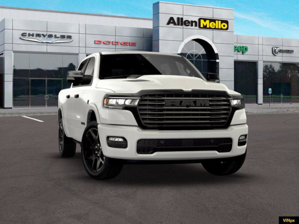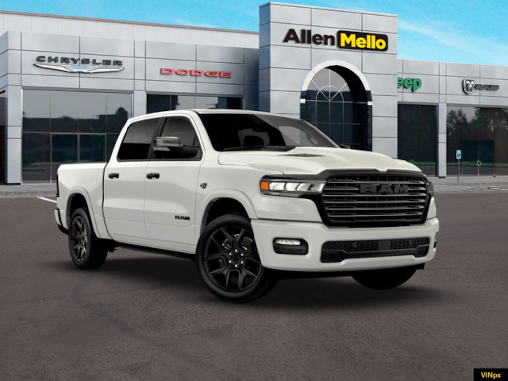 Allen Mello Chrysler Jeep Dodge Ram is proud to present you with another True Market Priced Vehicle. This 2026 Ram 1500 Laramie is loaded with the following Factory Options: Bed Utility Group (Exterior 115V AC Outlet, MOPAR 4 Adjustable Cargo Tie-Down Hooks, and MOPAR Spray in Bedliner), Laramie Level 2 Equipment Group (14.4" Touchscreen Display, 4G LTE Wi-Fi Hot Spot, Cluster 12" TFT Color Display, Connected Travel and Traffic Services, Connectivity - US/Canada, Front Passenger Interactive Display, GPS Navigation, Harman/Kardon 19 Speaker Premium Sound, Integrated Center Stack Radio, Integrated Voice Command with Bluetooth, Power Tailgate, Radio: Uconnect 5 Nav with 14.4" Display, Rain Sensitive Windshield Wipers, SiriusXM Radio Service, SiriusXM with 360L, and USB Host Flip), Night Edition (Accent Color Door Handles, Accent Color Premium Power Mirrors, Accent Color Tailgate Handle, Anti-Spin Differential Rear Axle, Auto Power-Folding Mirrors, Auto-Dimming Exterior Driver Mirror, Black Exterior Truck Badging, Black Headlamp Bezels, Black Interior Accents, Black Painted Exterior Mirrors Caps, Black Tail Lamp Bezels, Body Color Front Bumper, Body Color Rear Bumper with Step Pads, Convex Wide-Angle Exterior Mirror Insert, Dual Exhaust with Black Tips, Exterior Mirrors Approach Lamps, Exterior Mirrors Courtesy Lamps, Exterior Mirrors with Heating Element, Exterior Mirrors with Memory, Exterior Mirrors with Supplemental Signals, Grille Surround 3 Black Texture 2 Black, Pirelli Brand Tires, Proximity Approach/Departure Lamps, RAM Grille Badge - Black, Sport Performance Hood, and Wheels: 22" x 9" Forged Aluminum), Quick Order Package 27H Laramie, 10 Speakers, 4-Wheel Disc Brakes, ABS brakes, Active Noise Control System, Adjustable pedals, Air Conditioning, Alloy wheels, AM/FM radio: SiriusXM with 360L, Apple CarPlay/Android Auto, Audio memory, Auto High-beam Headlights, Auto-dimming door mirrors, Auto-dimming Rear-View mirror, Automatic temperature control, Brake assist, Bumpers: chrome, Chrome Exterior Mirrors, Compass, Delay-off headlights, Dome Dual LED Reading Lamp, Driver door bin, Driver vanity mirror, Dual front impact airbags, Dual front side impact airbags, Dual-Pane Panoramic Sunroof, Electronic Stability Control, Front anti-roll bar, Front Bucket Seats, Front Center Armrest w/Storage, Front dual zone A/C, Front fog lights, Front License Plate Bracket, Front reading lights, Front wheel independent suspension, Fully automatic headlights, Garage door transmitter, Heated door mirrors, Heated front seats, Heated rear seats, Heated steering wheel, Illuminated entry, Leather steering wheel, Leather Trimmed Bucket Seats, LED Dome/Reading Lamp, Low tire pressure warning, Manufacturer's Statement of Origin, Memory seat, Navigation System, Occupant sensing airbag, Off-Road Information Pages, Outside temperature display, Overhead airbag, Overhead console, Panic alarm, ParkView Rear Back-Up Camera, Passenger door bin, Passenger vanity mirror, Pedal memory, Power D Discount includes a $1,000 Hospital, Military, Firefighters, Police or School Employees must show proof of employment. Price does not include tax, title, license, and document fees. Not all customers qualify for all rebates. Contact us for more information. Price includes: $1000 - 2026 National Bonus Cash . Exp. 03/31/2026 $3500 - 2026 Natio