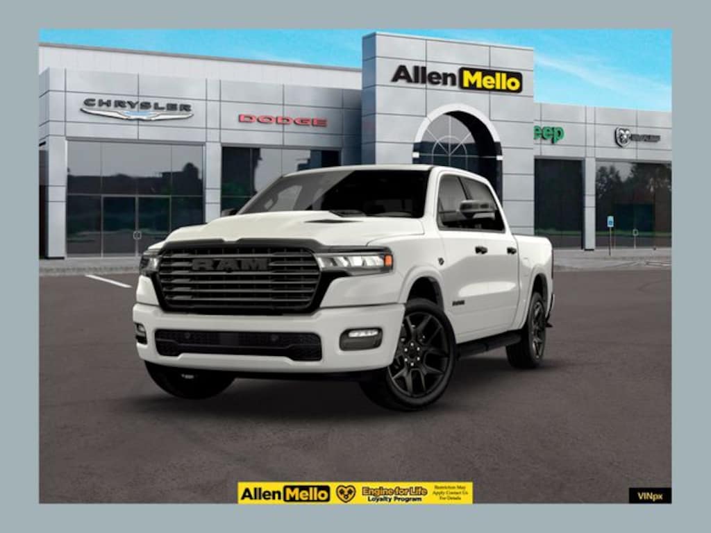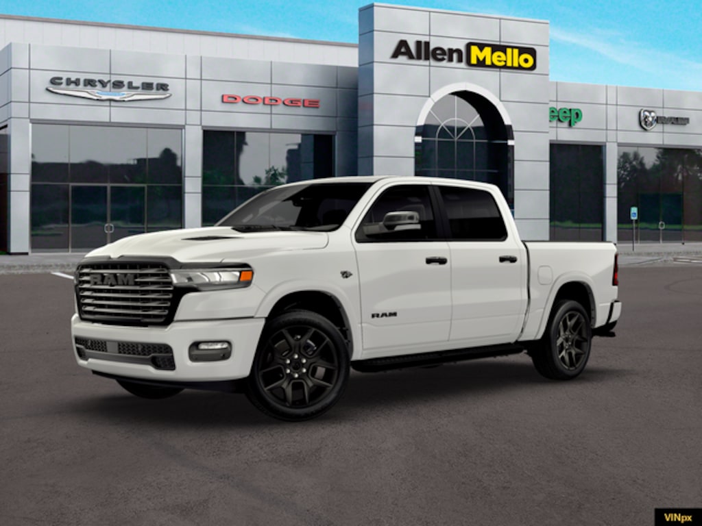 Allen Mello Chrysler Jeep Dodge Ram is proud to present you with another True Market Priced Vehicle. This 2026 Ram 1500 Laramie is loaded with the following Factory Options: Bed Utility Group (Exterior 115V AC Outlet, MOPAR 4 Adjustable Cargo Tie-Down Hooks, and MOPAR Spray in Bedliner), Laramie Level 2 Equipment Group (14.4" Touchscreen Display, 4G LTE Wi-Fi Hot Spot, Cluster 12" TFT Color Display, Connected Travel and Traffic Services, Connectivity - US/Canada, Front Passenger Interactive Display, GPS Navigation, Harman/Kardon 19 Speaker Premium Sound, Integrated Center Stack Radio, Integrated Voice Command with Bluetooth, Power Tailgate, Radio: Uconnect 5 Nav with 14.4" Display, Rain Sensitive Windshield Wipers, SiriusXM Radio Service, SiriusXM with 360L, and USB Host Flip), Night Edition (Accent Color Door Handles, Accent Color Premium Power Mirrors, Accent Color Tailgate Handle, Anti-Spin Differential Rear Axle, Auto Power-Folding Mirrors, Auto-Dimming Exterior Driver Mirror, Black Exterior Truck Badging, Black Headlamp Bezels, Black Interior Accents, Black Painted Exterior Mirrors Caps, Black Tail Lamp Bezels, Body Color Front Bumper, Body Color Rear Bumper with Step Pads, Convex Wide-Angle Exterior Mirror Insert, Dual Exhaust with Black Tips, Exterior Mirrors Approach Lamps, Exterior Mirrors Courtesy Lamps, Exterior Mirrors with Heating Element, Exterior Mirrors with Memory, Exterior Mirrors with Supplemental Signals, Grille Surround 3 Black Texture 2 Black, Pirelli Brand Tires, Proximity Approach/Departure Lamps, RAM Grille Badge - Black, Sport Performance Hood, and Wheels: 22" x 9" Forged Aluminum), Quick Order Package 27H Laramie, Trailer Tow Group II (Trailer Brake Control, Trailer Light Check, Trailer Reverse Steering Control, and Trailer Tire Pressure Monitoring System), 10 Speakers, 33 Gallon Fuel Tank, 4-Wheel Disc Brakes, ABS brakes, Active Noise Control System, Adjustable pedals, Air Conditioning, Alloy wheels, AM/FM radio: SiriusXM with 360L, Apple CarPlay/Android Auto, Audio memory, Auto High-beam Headlights, Auto-dimming door mirrors, Auto-dimming Rear-View mirror, Automatic temperature control, Brake assist, Bumpers: chrome, Chrome Exterior Mirrors, Compass, Delay-off headlights, Dome Dual LED Reading Lamp, Driver door bin, Driver vanity mirror, Dual front impact airbags, Dual front side impact airbags, Dual-Pane Panoramic Sunroof, Electronic Stability Control, Front anti-roll bar, Front Bucket Seats, Front Center Armrest w/Storage, Front dual zone A/C, Front fog lights, Front License Plate Bracket, Front reading lights, Front wheel independent suspension, Fully automatic headlights, Garage door transmitter, Heated door mirrors, Heated front seats, Heated rear seats, Heated steering wheel, Illuminated entry, Leather steering wheel, Leather Trimmed Bucket Seats, LED Dome/Reading Lamp, Low tire pressure warning, Manufacturer's Statement of Origin, Memory seat, Mopar Black Tubular Side Steps, MOPAR Front and Rear Rubber Floor Mats, Navigation System, Occupant sensing airbag, Off-Road Informa Discount includes a $1,000 Hospital, Military, Firefighters, Police or School Employees must show proof of employment. Price does not include tax, title, license, and document fees. Not all customers qualify for all rebates. Contact us for more information. Price includes: $3500 - 2026 Na