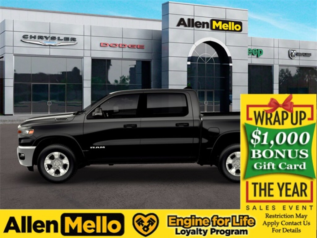 Allen Mello Chrysler Jeep Dodge Ram is proud to present you with another True Market Priced Vehicle. This 2026 Ram 1500 Big Horn/Lone Star is loaded with the following Factory Options: Big Horn Level 1 Equipment Group (115V Auxiliary Power Outlet, 2nd Row In Floor Storage Bins, 3 Rear Seat Head Restraints, 4 Way Front Headrests, 400W Inverter, Auto Power-Folding Mirrors, Auto-Dimming Exterior Driver Mirror, Auto-Dimming Rear-View Mirror, Black Exterior Mirrors, Black Premium Power Mirrors, Body Color Fender Flares, Bucket Seats, Center Console Parts Module, Convex Wide-Angle Exterior Mirror Insert, Deluxe Cloth Bucket Seats, Exterior Mirrors Courtesy Lamps, Exterior Mirrors w/Heating Element, Exterior Mirrors w/Supplemental Signals, Front Seat Back Map Pockets, Full Length Floor Console, Glove Box Lamp, Heated Front Seats, Heated Steering Wheel, Leather Wrapped Steering Wheel, Manual Adjust 4-Way Front Passenger Seat, Power 2-Way Driver Lumbar Adjust, Power Adjust 8-Way Driver Seat, Power Adjustable Pedals, Rear 60/40 Folding Seat, Rear Center Armrest, Rear Dome w/On/Off Switch Lamp, Rear Power Sliding Window, Rear Window Defroster, SiriusXM Radio Service, SiriusXM Satellite Radio, Steering Wheel Mounted Audio Controls, Sun Visors w/Illuminated Vanity Mirrors, and Universal Garage Door Opener), Quick Order Package 21Z Big Horn, 4-Wheel Disc Brakes, 48V Belt Starter Generator, 4G LTE Wi-Fi Hot Spot, 6 Speakers, ABS brakes, Air Conditioning, Alloy wheels, AM/FM radio, Apple CarPlay, Apple CarPlay/Android Auto, Auto High-beam Headlights, Brake assist, Bumpers: chrome, Cloth Bucket Seats, Compass, Connectivity - US/Canada, Delay-off headlights, Driver door bin, Dual front impact airbags, Dual front side impact airbags, Electronic Stability Control, Front anti-roll bar, Front Bucket Seats, Front Center Armrest w/Storage, Front fog lights, Front License Plate Bracket, Front reading lights, Front wheel independent suspension, Fully automatic headlights, Global Telematics Box Module (TBM), Google Android Auto, GPS Antenna Input, Heated door mirrors, Illuminated entry, Integrated Center Stack Radio, Integrated Voice Command w/Bluetooth, Low tire pressure warning, Manual Adjust 4-Way Driver Seat, Manual Folding Exterior Mirrors, Manufacturer's Statement of Origin, MOPAR Front & Rear Rubber Floor Mats, Occupant sensing airbag, Outside temperature display, Overhead airbag, Overhead console, Panic alarm, ParkView Rear Back-Up Camera, Passenger door bin, Passenger vanity mirror, Power door mirrors, Power steering, Power windows, Radio data system, Radio: Uconnect 5 W w/8.4" Display, RAM Grille Badge - Chrome, Rear anti-roll bar, Rear step bumper, Rear Wheelhouse Liners, Remote keyless entry, Speed control, Supplier Part Tracking (J-1), Tachometer, Telescoping steering wheel, Tilt steering wheel, Traction control, Trip computer, USB Host Flip, Variably intermittent wipers, Voltmeter, and Wheels: 18" x 8" Cast-Aluminum Painted!! Discount includes a $1,000 Hospital, Military, Firefighters, Police or School Employees must show proof of employment. Price does not include tax, title, license, and document fees. Not all customers qualify for all rebates. Contact us for more information. Price includes: $3500 - 2026 National Retail Consumer Cash . Exp. 12/01/2025