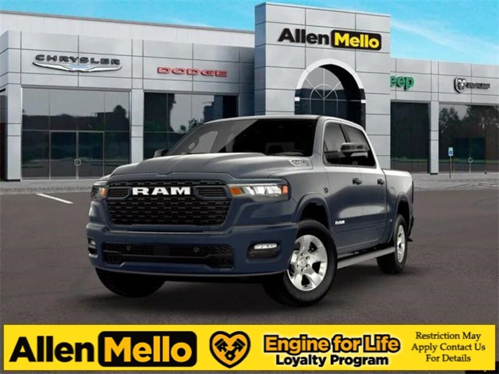 Allen Mello Chrysler Jeep Dodge Ram is proud to present you with another True Market Priced Vehicle. This 2026 Ram 1500 Big Horn/Lone Star is loaded with the following Factory Options: Bed Utility Group (Exterior 115V AC Outlet, MOPAR 4 Adjustable Cargo Tie-Down Hooks, MOPAR Spray in Bedliner, and Pick-Up Box Lighting), Big Horn Level 2 Equipment Group (115V Auxiliary Power Outlet, 115V Auxiliary Rear Power Outlet, 12" Touchscreen Display, 2nd Row in Floor Storage Bins, 3 Rear Seat Head Restraints, 4 Way Front Headrests, 400W Inverter, 4G LTE Wi-Fi Hot Spot, 9 Amplified Speakers with Subwoofer, Air Conditioning ATC with Dual Zone Control, Apple CarPlay, Auto Power-Folding Mirrors, Auto-Dimming Exterior Driver Mirror, Auto-Dimming Rear-View Mirror, Black Exterior Mirrors, Black Premium Power Mirrors, Body Color Fender Flares, Bucket Seats, Center Console Parts Module, Cluster 7.0" TFT Color Display, Configurable Drive Mode, Connected Travel and Traffic Services, Connectivity - US/Canada, Convex Wide-Angle Exterior Mirror Insert, Deluxe Cloth Bucket Seats, Disassociated Touchscreen Display, Exterior Mirrors Courtesy Lamps, Exterior Mirrors with Heating Element, Exterior Mirrors with Supplemental Signals, Front Seat Back Map Pockets, Full Length Floor Console, Global Telematics Box Module, Glove Box Lamp, Google Android Auto, GPS Antenna Input, GPS Navigation, HD Radio, Heated Front Seats, Heated Steering Wheel, Integrated Center Stack Radio, Integrated Voice Command with Bluetooth, Leather Wrapped Steering Wheel, LED Dome Lamp with on/Off Switch, LED Footwell Lighting, Manual Adjust 4-Way Front Passenger Seat, Media Hub with 2 Charge Only USBs, Overhead LED Lamps, Power 2-Way Driver Lumbar Adjust, Power Adjust 8-Way Driver Seat, Power Adjustable Pedals, Premium Overhead Console, Radio: Uconnect 5 Navigation with 12.0" Display, Rear 60/40 Folding Seat, Rear Center Armrest, Rear Power Sliding Window, Rear Window Defroster, Remote Tailgate Release, Security Alarm, SiriusXM Radio Service, SiriusXM with 360L, Steering Wheel Mounted Audio Controls, Sun Visors with Illuminated Vanity Mirrors, Universal Garage Door Opener, and USB Host Flip), Quick Order Package 27Z Big Horn, Sport Appearance Package (Black Interior Accents, Body Color Door Handles, Body Color Front Bumper, Body Color Rear Bumper with Step Pads, Body Color Tailgate Handle, Grille Surround 1 Body Color Texture 1 Black, and RAM Grille Badge - Chrome), 33 Gallon Fuel Tank, 4-Wheel Disc Brakes, 48V Belt Starter Generator, 6 Speakers, ABS brakes, Air Conditioning, Alloy wheels, AM/FM radio, Apple CarPlay/Android Auto, Auto High-beam Headlights, Brake assist, Bumpers: chrome, Cloth Bucket Seats, Compass, Delay-off headlights, Dome Dual LED Reading Lamp, Driver door bin, Dual front impact airbags, Dual front side impact airbags, Dual-Pane Panoramic Sunroof, Electronic Stability Control, Front anti-roll bar, Front Bucket Seats, Front Center Armrest w/Storage, Front fog lights, Front License Plate Bracket, Front reading lights, Front wheel independe Discount includes a $1,000 Hospital, Military, Firefighters, Police or School Employees must show proof of employment. Price does not include tax, title, license, and document fees. Not all customers qualify for all rebates. Contact us for more information. Price includes: $3500 - 2026 Natio