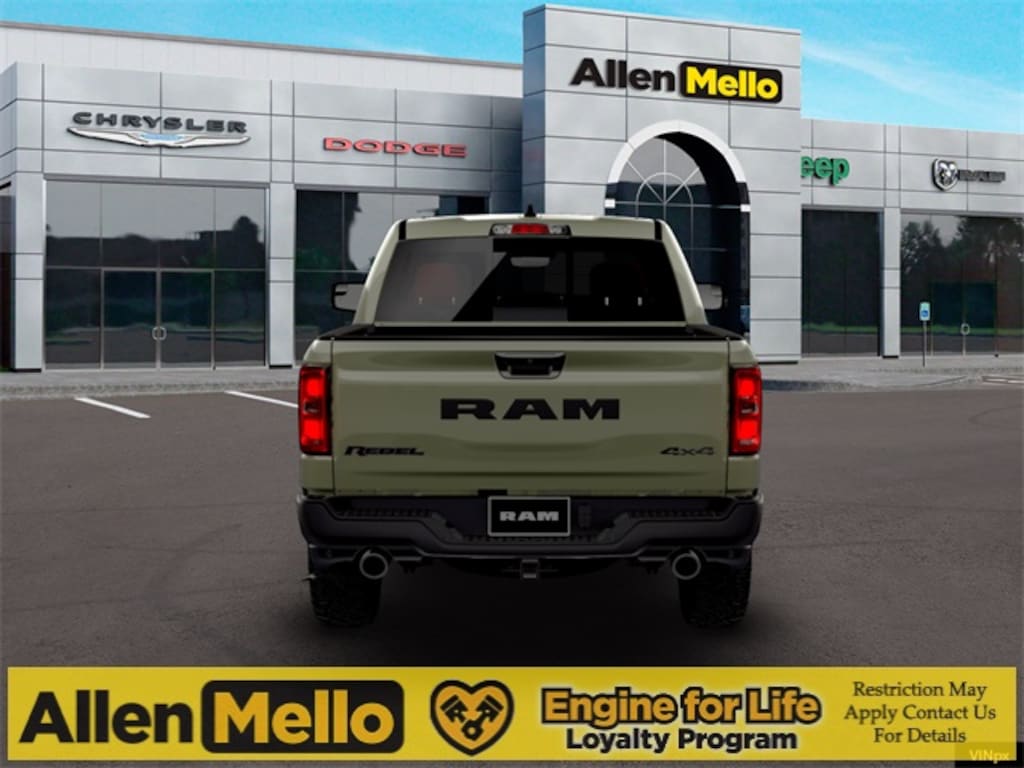 Allen Mello Chrysler Jeep Dodge Ram is proud to present you with another True Market Priced Vehicle. This 2026 Ram 1500 Rebel is loaded with the following Factory Options: Bed Utility Group (Exterior 115V AC Outlet, MOPAR 4 Adjustable Cargo Tie-Down Hooks, and MOPAR Spray In Bedliner), Quick Order Package 21W Rebel, Rebel Level 2 Equipment Group (115V Auxiliary Rear Power Outlet, 14.4" Touchscreen Display, 2-Door Passive Entry, Front Door Locks, 4G LTE Wi-Fi Hot Spot, Accent Color Door Handles, Accent Color Premium Power Mirrors, Accent Color Tailgate Handle, Apple CarPlay, Auto Power-Folding Mirrors, Auto-Dimming Exterior Driver Mirror, Black Painted Exterior Mirrors Caps, Connected Travel & Traffic Services, Connectivity - US/Canada, Convex Wide-Angle Exterior Mirror Insert, Disassociated Touchscreen Display, Driver Seat Memory, Dual Wireless Charging Pad, Exterior Mirrors Approach Lamps, Exterior Mirrors Courtesy Lamps, Exterior Mirrors w/Heating Element, Exterior Mirrors w/Memory, Exterior Mirrors w/Supplemental Signals, Front Passenger Interactive Display, Global Telematics Box Module (TBM), Google Android Auto, GPS Antenna Input, GPS Navigation, harman/kardon 19 Speaker Premium Sound, HD Radio, Heated Second Row Seats, Integrated Center Stack Radio, Integrated Voice Command w/Bluetooth, Media Hub w/2 Charge Only USBs, Off-Road Information Pages, Power 2-Way Passenger Lumbar Adjust, Power Adjust 8-Way Front Passenger Seat, Power Adjustable Pedals w/Memory, Power Tailgate, Proximity Approach/Departure Lamps, Radio: Uconnect 5 Nav w/14.4" Display, Radio/Driver Seat/Mirrors/Pedals Memory, Rain Sensitive Windshield Wipers, Rear Window Defroster, Security Alarm, SiriusXM Radio Service, SiriusXM w/360L, Smartphone As A Key Capable, and USB Host Flip), 10 Speakers, 3.92 Rear Axle Ratio, 4 Way Front Headrests, 4-Wheel Disc Brakes, ABS brakes, Air Conditioning, Alloy wheels, AM/FM radio: SiriusXM with 360L, Apple CarPlay/Android Auto, Auto High-beam Headlights, Auto-dimming Rear-View mirror, Automatic temperature control, Black Exterior Mirrors, Brake assist, Bucket Seats, Cloth/Vinyl Bucket Seats, Compass, Delay-off headlights, Dome Dual LED Reading Lamp, Driver door bin, Driver vanity mirror, Dual front impact airbags, Dual front side impact airbags, Dual-Pane Panoramic Sunroof, Electronic Stability Control, Front anti-roll bar, Front Bucket Seats, Front Center Armrest w/Storage, Front dual zone A/C, Front fog lights, Front License Plate Bracket, Front reading lights, Front Seat Back Map Pockets, Front wheel independent suspension, Full Length Upgraded Floor Console, Fully automatic headlights, Garage door transmitter, Heated door mirrors, Heated Front Seats, Heated front seats, Heated Steering Wheel, Heated steering wheel, Illuminated entry, Leather steering wheel, Low tire pressure warning, Manual Folding Exterior Mirrors, Manufacturer's Statement of Origin, MyFlexCare Service Plan, Navigation System, Occupant sensing airbag, Outside temperature display, Overhead airbag, Overhead console, Panic alarm, ParkView Rear Back-Up Camera, Passenger door bin, Passenger vanity mir Discount includes a $1,000 Hospital, Military, Firefighters, Police or School Employees must show proof of employment. Price does not include tax, title, license, and document fees. Not all customers qualify for all rebates. Contact us for more information. Price includes: $3500 - 2026 National Re