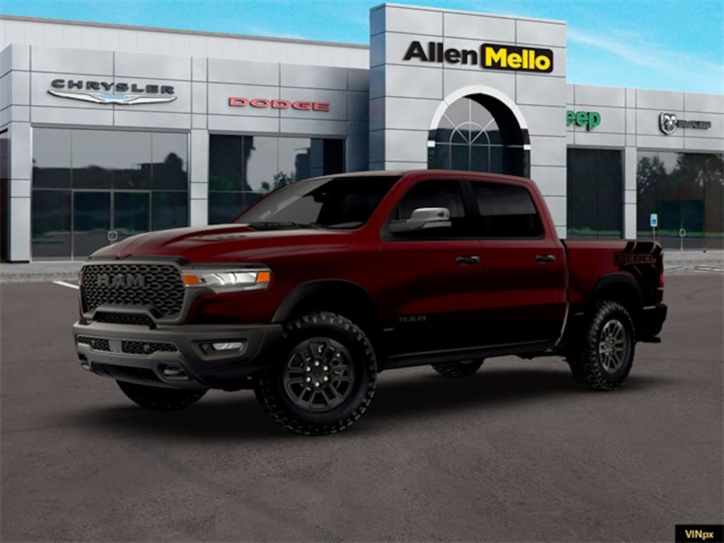Allen Mello Chrysler Jeep Dodge Ram is proud to present you with another True Market Priced Vehicle. This 2026 Ram 1500 Rebel is loaded with the following Factory Options: Bed Utility Group (Exterior 115V AC Outlet, MOPAR 4 Adjustable Cargo Tie-Down Hooks, and MOPAR Spray In Bedliner), Quick Order Package 21W Rebel, Rebel Level 2 Equipment Group (115V Auxiliary Rear Power Outlet, 14.4" Touchscreen Display, 2-Door Passive Entry, Front Door Locks, 4G LTE Wi-Fi Hot Spot, Accent Color Door Handles, Accent Color Premium Power Mirrors, Accent Color Tailgate Handle, Apple CarPlay, Auto Power-Folding Mirrors, Auto-Dimming Exterior Driver Mirror, Black Painted Exterior Mirrors Caps, Connected Travel & Traffic Services, Connectivity - US/Canada, Convex Wide-Angle Exterior Mirror Insert, Disassociated Touchscreen Display, Driver Seat Memory, Dual Wireless Charging Pad, Exterior Mirrors Approach Lamps, Exterior Mirrors Courtesy Lamps, Exterior Mirrors w/Heating Element, Exterior Mirrors w/Memory, Exterior Mirrors w/Supplemental Signals, Front Passenger Interactive Display, Global Telematics Box Module (TBM), Google Android Auto, GPS Antenna Input, GPS Navigation, harman/kardon 19 Speaker Premium Sound, HD Radio, Heated Second Row Seats, Integrated Center Stack Radio, Integrated Voice Command w/Bluetooth, Media Hub w/2 Charge Only USBs, Off-Road Information Pages, Power 2-Way Passenger Lumbar Adjust, Power Adjust 8-Way Front Passenger Seat, Power Adjustable Pedals w/Memory, Power Tailgate, Proximity Approach/Departure Lamps, Radio: Uconnect 5 Nav w/14.4" Display, Radio/Driver Seat/Mirrors/Pedals Memory, Rain Sensitive Windshield Wipers, Rear Window Defroster, Security Alarm, SiriusXM Radio Service, SiriusXM w/360L, Smartphone As A Key Capable, and USB Host Flip), 10 Speakers, 3.92 Rear Axle Ratio, 4 Way Front Headrests, 4-Wheel Disc Brakes, ABS brakes, Air Conditioning, Alloy wheels, AM/FM radio: SiriusXM with 360L, Apple CarPlay/Android Auto, Auto High-beam Headlights, Auto-dimming Rear-View mirror, Automatic temperature control, Black Exterior Mirrors, Brake assist, Bucket Seats, Cloth/Vinyl Bucket Seats, Compass, Delay-off headlights, Dome Dual LED Reading Lamp, Driver door bin, Driver vanity mirror, Dual front impact airbags, Dual front side impact airbags, Dual-Pane Panoramic Sunroof, Electronic Stability Control, Front anti-roll bar, Front Bucket Seats, Front Center Armrest w/Storage, Front dual zone A/C, Front fog lights, Front License Plate Bracket, Front reading lights, Front Seat Back Map Pockets, Front wheel independent suspension, Full Length Upgraded Floor Console, Fully automatic headlights, Garage door transmitter, Heated door mirrors, Heated Front Seats, Heated front seats, Heated Steering Wheel, Heated steering wheel, Illuminated entry, Leather steering wheel, Low tire pressure warning, Manual Folding Exterior Mirrors, Manufacturer's Statement of Origin, Navigation System, Occupant sensing airbag, Outside temperature display, Overhead airbag, Overhead console, Panic alarm, ParkView Rear Back-Up Camera, Passenger door bin, Passenger vanity mirror, Power 2- Discount includes a $1,000 Hospital, Military, Firefighters, Police or School Employees must show proof of employment. Price does not include tax, title, license, and document fees. Not all customers qualify for all rebates. Contact us for more information. Price includes: $3500 - 2026 National Re