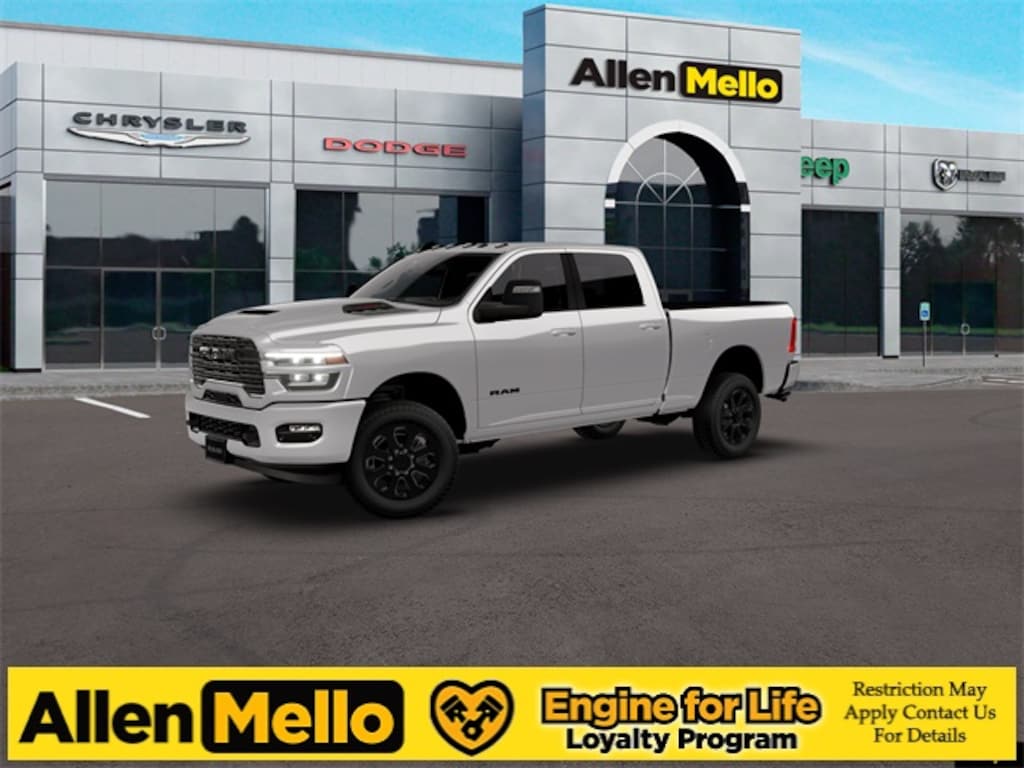 Allen Mello Chrysler Jeep Dodge Ram is proud to present you with another True Market Priced Vehicle. This 2026 Ram 2500 Laramie is loaded with the following Factory Options: Laramie Level 1 Plus Equipment Group (#1 Seat Foam Cushion, 115V Auxiliary Rear Power Outlet, 2 Way Rear Headrest Seat, 2nd Row in Floor Storage Bins, 4 Way Front Headrests, Active Lane Management System, Adaptive Steering System, Anti-Spin Differential Rear Axle, Auto Adjust in Reverse Exterior Mirrors, Auto Dim Exterior Mirror, Auto High Beam Headlamp Control, Auto Power-Folding Mirrors, Auto-Dimming Exterior Passenger Mirror, Bucket Seats, Center Stop Lamp with Cargo View Camera, Chrome Exterior Mirrors, Drowsy Driver Detection, Dual Wireless Charging Pad, Exterior Mirrors Courtesy Lamps, Exterior Mirrors with Heating Element, Exterior Mirrors with Memory, Exterior Mirrors with Supplemental Signals, Foam Bottle Insert (door Trim Panel), Folding Flat Load Floor Storage, Forward and Reverse Utility Lights, Front Seat Back Map Pockets, Full Length Upgraded Floor Console, Heated Front Seats, Heated Steering Wheel, High Back Seats, Leather Trimmed Bucket Seats, LED Bed Lighting, Mirror Running Lights, MOPAR Deployable Bed Step, MOPAR Spray in Bedliner, Power 2-Way Driver Lumbar Adjust, Power 2-Way Passenger Lumbar Adjust, Power Adjust 8-Way Driver Seat, Power Adjust 8-Way Front Passenger Seat, Power Adjust Mirrors, Power Adjustable Pedals with Memory, Power Heated Fold Telescopic Mirrors with Memory, Power Telescoping Mirrors, Power-Adjustable Convex Aux Mirrors, Radio/Driver Seat/Mirrors/Pedals Memory, Rain Sensitive Windshield Wipers, Rear 60/40 Folding Seat, Remote Tailgate Release, Traffic Sign Recognition, and Ventilated Front Seats), Night Edition (Black Exterior Mirrors, Black Exterior Truck Badging, Black Wheel Center Hub, Body Color Grille-Surround, Gloss Black Grille Billets/Accents, Sport Performance Hood, and Wheels: 20" x 8.0" Black Painted Aluminum), Quick Order Package 2UH Laramie, 10 Speakers, 3.73 Axle Ratio, 4-Wheel Disc Brakes, 4G LTE Wi-Fi Hot Spot, ABS brakes, Air Conditioning, Alexa Built-in, Alloy wheels, AM/FM radio: SiriusXM with 360L, Apple CarPlay, Apple CarPlay/Android Auto, Auto-dimming Rear-View mirror, Automatic temperature control, Brake assist, Bumpers: body-color, Clearance Lamps, Compass, Connected Travel and Traffic Services, Connectivity - US/Canada, Delay-off headlights, Disassociated Touchscreen Display, Driver door bin, Driver vanity mirror, Dual front impact airbags, Dual front side impact airbags, Electronic Stability Control, Emergency Vehicle Alert System (EVAS), For Details, Visit DriveUconnect.com, For More Info, Call 800-643-2112, Front anti-roll bar, Front Center Armrest w/Storage, Front dual zone A/C, Front fog lights, Front License Plate Bracket, Front reading lights, Fully automatic headlights, Garage door transmitter, Global Telematics Box Module, Google Android Auto, GPS Antenna Input, GPS Navigation, HD Radio, Heated door mirrors, Heated front seats, Heated steering wheel, Illuminated entry, Integrated Voice Command with Bluetooth, Leather Trim 40/20/40 B Discount includes a $1,000 Hospital, Military, Firefighters, Police or School Employees must show proof of employment. Price does not include tax, title, license, and document fees. Not all customers qualify for all rebates. Contact us for more information. Price includes: $1000 - 2026 N