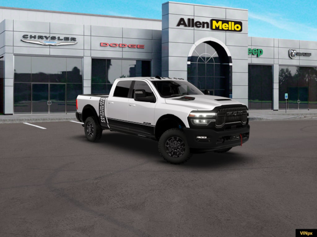 Allen Mello Chrysler Jeep Dodge Ram is proud to present you with another True Market Priced Vehicle. This 2026 Ram 2500 Rebel is loaded with the following Factory Options: Power Wagon Level 1 Equipment Group (115V Auxiliary Rear Power Outlet, 2 Way Rear Headrest Seat, 4 Way Front Headrests, 9 Alpine Speakers with Subwoofer, Auto Adjust in Reverse Exterior Mirrors, Auto Dim Exterior Mirror, Auto High Beam Headlamp Control, Auto Power-Folding Mirrors, Auto-Dimming Exterior Passenger Mirror, Black Exterior Mirrors, Body Color Door Handles, Bucket Seats, Dual Wireless Charging Pad, Exterior Mirrors Courtesy Lamps, Exterior Mirrors with Heating Element, Exterior Mirrors with Memory, Exterior Mirrors with Supplemental Signals, Folding Flat Load Floor Storage, Forward and Reverse Utility Lights, Front Door Locks 2-Door Passive Entry, Front Electric Winch, Front Seat Back Map Pockets, Full Length Upgraded Floor Console, Heated Front Seats, Heated Second Row Seats, Heated Steering Wheel, High Back Seats, Leather Trimmed Bucket Seats, LED Dome Lamp with on/Off Switch, LED Interior Lighting, Media Hub with 2 Charge Only USBs, Mirror Running Lights, MOPAR Front and Rear Rubber Floor Mats, Overhead LED Lamps, Power 2-Way Driver Lumbar Adjust, Power 2-Way Passenger Lumbar Adjust, Power Adjust 8-Way Driver Seat, Power Adjust 8-Way Front Passenger Seat, Power Adjust Mirrors, Power Adjustable Pedals with Memory, Power Heated Fold Telescopic Mirrors with Memory, Power Telescoping Mirrors, Power-Adjustable Convex Aux Mirrors, Premium Overhead Console, Radio/Driver Seat/Mirrors/Pedals Memory, Rain Sensitive Windshield Wipers, Rear 60/40 Folding Seat, Sport Performance Hood, Sun Visors with Illuminated Vanity Mirrors, Universal Garage Door Opener, and Ventilated Front Seats), Quick Order Package 2UP Power Wagon (Black Wheel Center Hub, Front Disconnecting Stabilizer Bar, Instrument Cluster Theme 5 - Power Wagon, Power Wagon Instrument Panel Spec Plate, Raised Ride Height, RAM Articulink Suspension, Tru-Lok Front and Rear Axles, and Wheels: 17" x 8.0" Black Painted Aluminum), 4 Adjustable Cargo Tie-Down Hooks, 4-Wheel Disc Brakes, 4G LTE Wi-Fi Hot Spot, 6 Speakers, ABS brakes, Adjustable pedals, Air Conditioning, Alexa Built-in, Alloy wheels, AM/FM radio: SiriusXM with 360L, Apple CarPlay, Apple CarPlay/Android Auto, Auto-dimming Rear-View mirror, Automatic temperature control, Block heater, Brake assist, Cloth Heated Power Bench Seat, Compass, Connected Travel and Traffic Services, Connectivity - US/Canada, Delay-off headlights, Disassociated Touchscreen Display, Driver door bin, Dual front impact airbags, Dual front side impact airbags, Electronic Stability Control, Emergency Vehicle Alert System (EVAS), For Details, Visit DriveUconnect.com, For More Info, Call 800-643-2112, Front anti-roll bar, Front Center Armrest w/Storage, Front dual zone A/C, Front fog lights, Front License Plate Bracket, Front reading lights, Fully automatic headlights, Global Telematics Box Module, Google Android Auto, GPS Antenna Input, GPS Navigation, HD Radio, Heated door mirrors, Heated front seats, Heated steer Discount includes a $1,000 Hospital, Military, Firefighters, Police or School Employees must show proof of employment. Price does not include tax, title, license, and document fees. Not all customers qualify for all rebates. Contact us for more information. Price includes: $1000 - 2026 N