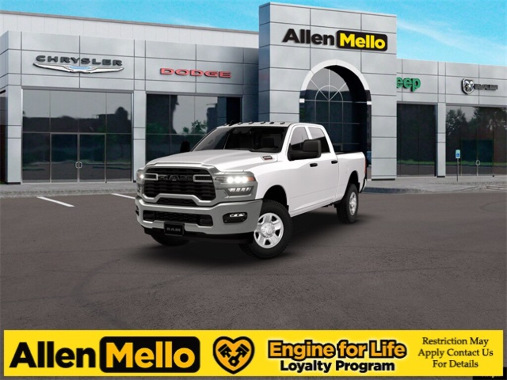 Allen Mello Chrysler Jeep Dodge Ram is proud to present you with another True Market Priced Vehicle. This 2026 Ram 2500 Tradesman is loaded with the following Factory Options: Chrome Appearance Group (115-Volt Auxiliary Front Power Outlet, 400W Inverter, Bright Front Bumper, Bright Rear Bumper, Center Hub, Chrome Grille Surround, Exterior 115V AC Outlet, Matte Black Mesh Grille with Chrome, and Wheels: 18" x 8.0" Steel Chrome Clad), Commercial Features Package, Quick Order Package 2UA Tradesman, 2 Way Rear Headrest Seat, 3.73 Axle Ratio, 4 Way Front Headrests, 4-Wheel Disc Brakes, 40/20/40 Split Bench Seat, 4G LTE Wi-Fi Hot Spot, 6 Speakers, ABS brakes, Air Conditioning, AM/FM radio: SiriusXM, Apple CarPlay, Apple CarPlay/Android Auto, Black Exterior Mirrors, Black Wheel Center Hub, Brake assist, Clearance Lamps, Compass, Connectivity - US/Canada, Delay-off headlights, Driver door bin, Dual front impact airbags, Dual front side impact airbags, Electronic Stability Control, For Details, Visit DriveUconnect.com, For More Info, Call 800-643-2112, Front anti-roll bar, Front Armrest with Cupholders, Front Center Armrest w/Storage, Front fog lights, Front License Plate Bracket, Front reading lights, Fully automatic headlights, Global Telematics Box Module, Google Android Auto, GPS Antenna Input, Illuminated entry, Integrated Voice Command with Bluetooth, Low tire pressure warning, Manual Adjust 4-Way Driver Seat, Manual Adjust 4-Way Front Passenger Seat, Manual Folding Exterior Mirrors, Manuarl Telescoping Mirrors, Manufacturer's Statement of Origin, MyFlexCare Service Plan, Occupant sensing airbag, Outside temperature display, Overhead airbag, Overhead console, Panic alarm, ParkView Rear Back-Up Camera, Passenger door bin, Passenger vanity mirror, Power steering, Power windows, Radio data system, Radio: Uconnect 5 with 8.4" Display, Rear anti-roll bar, Rear Folding Seat, Rear step bumper, Rear window defroster, Remote keyless entry, Remote USB Port - Charge Only, Selectable Tire Fill Alert, SiriusXM Radio Service, Speed control, Storage Tray, Tachometer, Tilt steering wheel, Traction control, Variably intermittent wipers, Voltmeter, and Wheels: 17" x 7.5" Black Steel Styled!! Discount includes a $1,000 Hospital, Military, Firefighters, Police or School Employees must show proof of employment. Price does not include tax, title, license, and document fees. Not all customers qualify for all rebates. Contact us for more information. Price includes: $1000 - 2026 National Bonus Cash . Exp. 01/05/2026