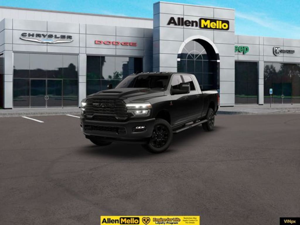 Allen Mello Chrysler Jeep Dodge Ram is proud to present you with another True Market Priced Vehicle. This 2026 Ram 2500 Laramie is loaded with the following Factory Options: Cold Weather Group (Engine Block Heater and MOPAR Winter Front Grille Cover), Laramie Level 1 Plus Equipment Group (#1 Seat Foam Cushion, 115V Auxiliary Rear Power Outlet, 2 Way Rear Headrest Seat, 4 Way Front Headrests, Active Lane Management System, Adaptive Steering System, Anti-Spin Differential Rear Axle, Auto Adjust in Reverse Exterior Mirrors, Auto Dim Exterior Mirror, Auto High Beam Headlamp Control, Auto Power-Folding Mirrors, Auto-Dimming Exterior Passenger Mirror, Bucket Seats, Center Stop Lamp with Cargo View Camera, Drowsy Driver Detection, Dual Wireless Charging Pad, Exterior Mirrors Courtesy Lamps, Exterior Mirrors with Heating Element, Exterior Mirrors with Memory, Exterior Mirrors with Supplemental Signals, Foam Bottle Insert (door Trim Panel), Forward and Reverse Utility Lights, Front Seat Back Map Pockets, Full Length Upgraded Floor Console, Heated Front Seats, Heated Steering Wheel, High Back Seats, Leather Trimmed Bucket Seats, LED Bed Lighting, Mirror Running Lights, MOPAR Deployable Bed Step, MOPAR Spray in Bedliner, Power 2-Way Driver Lumbar Adjust, Power 2-Way Passenger Lumbar Adjust, Power Adjust 8-Way Driver Seat, Power Adjust 8-Way Front Passenger Seat, Power Adjust Mirrors, Power Adjustable Convex Aux Mirrors, Power Adjustable Pedals with Memory, Power Heated Fold Telescope Mirrors w/Memory, Power Telescoping Mirrors, Rain Sensitive Windshield Wipers, Rear 60/40 Folding Seat, Remote Tailgate Release, and Traffic Sign Recognition), Night Edition (Black Exterior Truck Badging, Black Wheel Center Hub, Body Color Grille Surround, Gloss Black Grille Billets/Accents, Sport Performance Hood, and Wheels: 20" x 8" Black Painted Aluminum), Quick Order Package 24H Laramie, 10 Speakers, 3.42 Axle Ratio, 4-Wheel Disc Brakes, 4G LTE Wi-Fi Hot Spot, ABS brakes, Air Conditioning, Alexa Built-in, Alloy wheels, AM/FM radio: SiriusXM with 360L, Apple CarPlay, Apple CarPlay/Android Auto, Auto-dimming Rear-View mirror, Automatic temperature control, Brake assist, Bumpers: body-color, Chrome Exterior Mirrors, Clearance Lamps, Compass, Connected Travel and Traffic Services, Connectivity - US/Canada, Delay-off headlights, Disassociated Touchscreen Display, Driver door bin, Driver vanity mirror, Dual front impact airbags, Dual front side impact airbags, Electronic Stability Control, Emergency Vehicle Alert System (EVAS), For Details, Visit DriveUconnect.com, For More Info, Call 800-643-2112, Front anti-roll bar, Front Center Armrest w/Storage, Front dual zone A/C, Front fog lights, Front License Plate Bracket, Front reading lights, Fully automatic headlights, Garage door transmitter, Global Telematics Box Module, Google Android Auto, GPS Antenna Input, GPS Navigation, HD Radio, Heated door mirrors, Heated front seats, Heated steering wheel, Illuminated entry, Integrated Voice Command with Bluetooth, Leather Trim 40/20/40 Bench Seat, Low tire pressure warning, Manufacturer's Statement Discount includes a $1,000 Hospital, Military, Firefighters, Police or School Employees must show proof of employment. Price does not include tax, title, license, and document fees. Not all customers qualify for all rebates. Contact us for more information. Price includes: $1000 - 2026 N