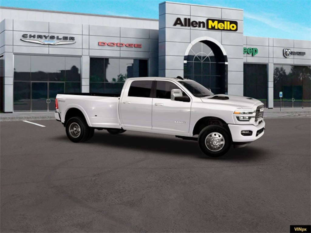 Allen Mello Chrysler Jeep Dodge Ram is proud to present you with another True Market Priced Vehicle. This 2026 Ram 3500 Laramie is loaded with the following Factory Options: Laramie Level 1 Plus Equipment Group (#1 Seat Foam Cushion, 115V Auxiliary Rear Power Outlet, 2 Way Rear Headrest Seat, 4 Way Front Headrests, Active Lane Management System, Adaptive Steering System, Auto Adjust in Reverse Exterior Mirrors, Auto Dim Exterior Mirror, Auto High Beam Headlamp Control, Auto Power-Folding Mirrors, Auto-Dimming Exterior Passenger Mirror, Bucket Seats, Center Stop Lamp with Cargo View Camera, Drowsy Driver Detection, Dual Wireless Charging Pad, Exterior Mirrors Courtesy Lamps, Exterior Mirrors with Heating Element, Exterior Mirrors with Memory, Exterior Mirrors with Supplemental Signals, Foam Bottle Insert (door Trim Panel), Forward and Reverse Utility Lights, Front Seat Back Map Pockets, Full Length Upgraded Floor Console, Heated Front Seats, Heated Steering Wheel, High Back Seats, Leather Trimmed Bucket Seats, LED Bed Lighting, Mirror Running Lights, MOPAR Deployable Bed Step, MOPAR Spray in Bedliner, Power 2-Way Driver Lumbar Adjust, Power 2-Way Passenger Lumbar Adjust, Power Adjust 8-Way Driver Seat, Power Adjust 8-Way Front Passenger Seat, Power Adjust Mirrors, Power Adjustable Pedals with Memory, Power Heated Folding Telescopic Mirrors with Memory, Power Telescoping Mirrors, Power-Adjustable Convex Aux Mirrors, Radio/Driver Seat/Mirrors/Pedals Memory, Rain Sensitive Windshield Wipers, Rear 60/40 Folding Seat, Remote Tailgate Release, Traffic Sign Recognition, and Ventilated Front Seats), Quick Order Package 24H Laramie, Sport Appearance Package (Body Color Grille Surround, Sport Decal, and Sport Performance Hood), 10 Speakers, 3.42 Axle Ratio, 4-Wheel Disc Brakes, 4G LTE Wi-Fi Hot Spot, 5th Wheel/Gooseneck Towing Prep Group, 6,000 lbs Front Axle with Hub Extension, ABS brakes, Air Conditioning, Alexa Built-in, Alloy wheels, AM/FM radio: SiriusXM with 360L, Apple CarPlay, Apple CarPlay/Android Auto, Auto Level Rear Air Suspension, Auto-dimming Rear-View mirror, Automatic temperature control, Black Wheel Center Hub, Box and Rear Fender Clearance Lamps, Brake assist, Bumpers: body-color, Center Hub, Chrome Exterior Mirrors, Clearance Lamps, Compass, Connected Travel and Traffic Services, Connectivity - US/Canada, Delay-off headlights, Disassociated Touchscreen Display, Driver door bin, Driver vanity mirror, Dual Alternators Rated At 480 Amps, Dual front impact airbags, Dual front side impact airbags, Dual Rear Wheels, Electronic Stability Control, Emergency Vehicle Alert System (EVAS), For Details Visit DriveUconnect.com, For More Info, Call 800-643-2112, Front anti-roll bar, Front Center Armrest w/Storage, Front dual zone A/C, Front fog lights, Front License Plate Bracket, Front reading lights, Fully automatic headlights, Garage door transmitter, Global Telematics Box Module, Google Andro Discount includes a $1,000 Hospital, Military, Firefighters, Police or School Employees must show proof of employment. Price does not include tax, title, license, and document fees. Not all customers qualify for all rebates. Contact us for more information. Price includes: $1000 -