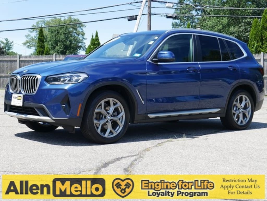 Allen Mello Chrysler Jeep Dodge Ram is proud to present you with another True Market Priced Pre-Owned Vehicle. This 2023 BMW X3 xDrive30i is loaded with the following Factory Options: Connected Package Pro, Convenience Package (Driver Lumbar Support and Panoramic Moonroof), Parking Assistance Package (Active Park Distance Control, Parking Assistant Plus, Rear-View Camera, and Surround View w/3D View), and 8-Speed Automatic Sport Connected Package Pro, Convenience Package (Driver Lumbar Support and Panoramic Moonroof), Parking Assistance Package (Active Park Distance Control, Parking Assistant Plus, Rear-View Camera, and Surround View w/3D View), 8-Speed Automatic Sport, 12 Speakers, 3.385 Axle Ratio, 4-Wheel Disc Brakes, ABS brakes, Air Conditioning, Alloy wheels, AM/FM Radio, AM/FM radio: SiriusXM, Apple CarPlay & Android Auto Compatibility, Auto High-beam Headlights, Auto-dimming door mirrors, Auto-dimming Rear-View mirror, Automatic temperature control, BMW Assist eCall, BMW TeleServices, Brake assist, Bumpers: body-color, ConnectedDrive Services, Delay-off headlights, Driver door bin, Driver vanity mirror, Dual front impact airbags, Dual front side impact airbags, Electronic Stability Control, Emergency communication system: BMW Assist eCall, Enhanced USB & Bluetooth w/Smartphone Integration, Exterior Parking Camera Rear, Four wheel independent suspension, Front anti-roll bar, Front Bucket Seats, Front Center Armrest, Front dual zone A/C, Front reading lights, Fully automatic headlights, Garage door transmitter, Genuine wood dashboard insert, Genuine wood door panel insert, Heated door mirrors, Heated Front Seats, Heated Steering Wheel, Hi-Fi Sound System, Illuminated entry, Knee airbag, Low tire pressure warning, Memory seat, Navigation, Navigation System, Occupant sensing airbag, Outside temperature display, Overhead airbag, Panic alarm, Passenger door bin, Passenger vanity mirror, Perforated SensaTec Upholstery, Power door mirrors, Power driver seat, Power Front Seats, Power Liftgate, Power passenger seat, Power steering, Power windows, Radio data system, Rain sensing wipers, Rear air conditioning, Rear anti-roll bar, Rear reading lights, Rear seat center armrest, Rear window defroster, Rear window wiper, Remote Engine Start, Remote keyless entry, Security system, SiriusXM Satellite Radio, Speed control, Speed-sensing steering, Speed-Sensitive Wipers, Split folding rear seat, Spoiler, Sport Seats, Sport steering wheel, Steering wheel mounted audio controls, Tachometer, Telescoping steering wheel, Tilt steering wheel, Traction control, Trailer Hitch, Trip computer, Turn signal indicator mirrors, Variably intermittent wipers, Wheels: 19" x 7.5" Y-Spoke (Style 693), and WiFi Hotspot!!