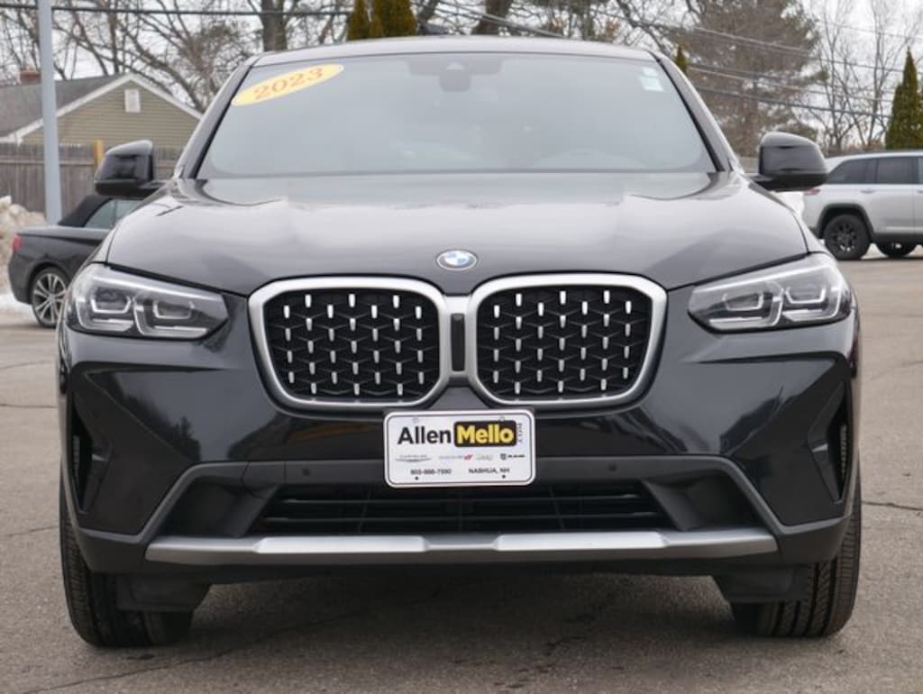 Allen Mello Chrysler Jeep Dodge Ram is proud to present you with another True Market Priced Pre-Owned Vehicle. This 2023 BMW X4 xDrive30i is loaded with the following Factory Options: Connected Package Pro, Convenience Package (Comfort Access Keyless Entry and Driver Lumbar Support), 12 Speakers, 3.39 Axle Ratio, 4-Wheel Disc Brakes, ABS brakes, Air Conditioning, Alloy wheels, AM/FM radio: SiriusXM, Anti-whiplash front head restraints, Apple CarPlay & Android Auto Compatibility, Auto High-beam Headlights, Auto-dimming door mirrors, Auto-dimming Rear-View mirror, Automatic temperature control, BMW Assist eCall, BMW TeleServices, Brake assist, Bumpers: body-color, ConnectedDrive Services, Delay-off headlights, Driver door bin, Driver vanity mirror, Dual front impact airbags, Dual front side impact airbags, Electronic Stability Control, Emergency communication system: BMW Assist eCall, Enhanced USB & Bluetooth w/Smartphone Integration, Exterior Parking Camera Rear, Four wheel independent suspension, Front anti-roll bar, Front Bucket Seats, Front Center Armrest, Front dual zone A/C, Front reading lights, Fully automatic headlights, Garage door transmitter, Genuine wood dashboard insert, Genuine wood door panel insert, Heated door mirrors, Heated Front Seats, Heated Steering Wheel, Hi-Fi Sound System, Illuminated entry, Knee airbag, Live Cockpit Pro w/Navi, Low tire pressure warning, Memory seat, Navigation System, Occupant sensing airbag, Outside temperature display, Overhead airbag, Overhead console, Panic alarm, Passenger door bin, Passenger vanity mirror, Perforated SensaTec Upholstery, Power door mirrors, Power driver seat, Power Front Seats, Power Liftgate, Power moonroof: Panorama, Power passenger seat, Power steering, Power windows, Radio data system, Radio: AM/FM Audio System, Rain sensing wipers, Rear air conditioning, Rear anti-roll bar, Rear reading lights, Rear seat center armrest, Rear window defroster, Remote keyless entry, Security system, SiriusXM Satellite Radio, Speed control, Speed-sensing steering, Speed-Sensitive Wipers, Split folding rear seat, Sport Seats, Sport steering wheel, Steering wheel mounted audio controls, Tachometer, Telescoping steering wheel, Tilt steering wheel, Traction control, Trip computer, Turn signal indicator mirrors, Variably intermittent wipers, Wheels: 19" x 7.5" Y-Spoke (Style 693), and WiFi Hotspot!!
