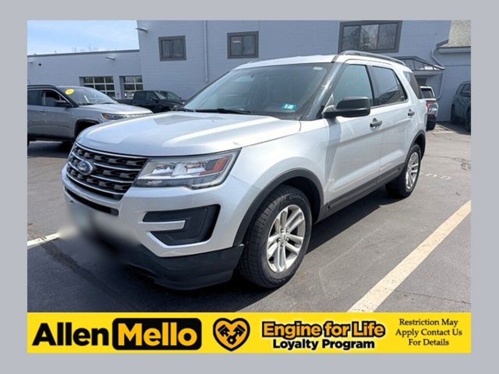 Allen Mello Chrysler Jeep Dodge Ram is proud to present you with another True Market Priced Pre-Owned Vehicle. This 2017 Ford Explorer is loaded with the following Factory Options: 4WD Equipment Group 100A, 4WD, 18" Painted Aluminum Wheels, 3.65 Axle Ratio, 3rd row seats: split-bench, 4-Wheel Disc Brakes, 6 Speakers, ABS brakes, Air Conditioning, Alloy wheels, AM/FM radio, Brake assist, Bumpers: body-color, CD player, Cloth Bucket Seats, Compass, Delay-off headlights, Driver door bin, Driver vanity mirror, Dual front impact airbags, Dual front side impact airbags, Electronic Stability Control, Emergency communication system: 911 Assist, Exterior Parking Camera Rear, Four wheel independent suspension, Front anti-roll bar, Front Bucket Seats, Front Center Armrest, Front License Plate Bracket, Front reading lights, Fully automatic headlights, Illuminated entry, Knee airbag, Low tire pressure warning, Occupant sensing airbag, Outside temperature display, Overhead airbag, Overhead console, Panic alarm, Passenger door bin, Passenger vanity mirror, Power door mirrors, Power driver seat, Power steering, Power windows, Radio: AM/FM Stereo w/Single-CD/MP3 Capable, Rear air conditioning, Rear anti-roll bar, Rear reading lights, Rear seat center armrest, Rear window defroster, Rear window wiper, Remote keyless entry, Roof rack: rails only, Speed control, Speed-sensing steering, Speed-Sensitive Wipers, Split folding rear seat, Spoiler, Steering wheel mounted audio controls, SYNC Communication & Entertainment System, Tachometer, Telescoping steering wheel, Tilt steering wheel, Traction control, Trip computer, and Variably intermittent wipers!!