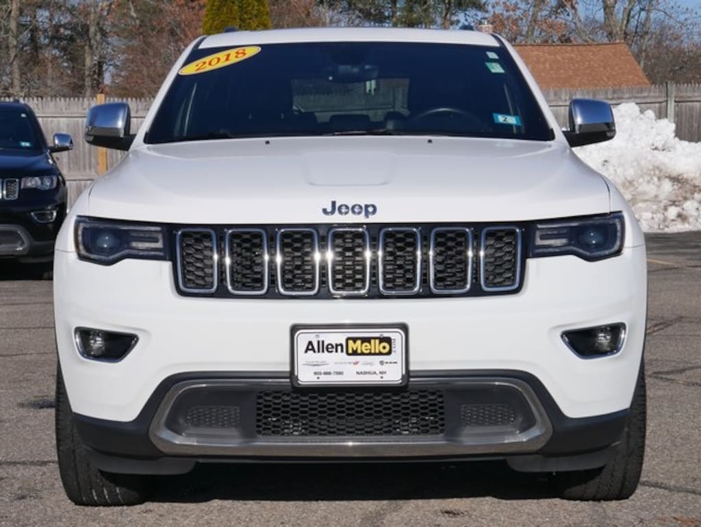 Allen Mello Chrysler Jeep Dodge Ram is proud to present you with another True Market Priced Pre-Owned Vehicle. This 2018 Jeep Grand Cherokee Limited is loaded with the following Factory Options: 4WD Luxury Group II (DISC) (#1 Seat Foam Cushion, 1-Year SiriusXM Guardian Trial, 5-Year SiriusXM Traffic Service, 5-Year SiriusXM Travel Link Service, 506 Watt Amplifier, 8.4" Touchscreen Display, 9 Amplified Speakers w/Subwoofer, Active Noise Control System, Apple CarPlay, Auto High Beam Headlamp Control, Automatic Headlamp Leveling System, Bi-Xenon High-Intensity Discharge Headlamps, Dual-Pane Panoramic Sunroof, For Details Visit DriveUconnect.com, Front LED Fog Lamps, Google Android Auto, GPS Antenna Input, GPS Navigation, HD Radio, Integrated Voice Command w/Bluetooth, Leather Trimmed Seats w/Perforated Inserts (DISC), LED Daytime Running Headlamps, Power Tilt/Telescope Steering Column, Radio: Uconnect 4C Nav w/8.4" Display, Rain Sensitive Windshield Wipers, SiriusXM Traffic Plus, SiriusXM Travel Link, USB Host Flip, and Ventilated Front Seats), Quick Order Package 2BH, 4WD, 3.45 Rear Axle Ratio, 4-Wheel Disc Brakes, 6 Speakers, ABS brakes, Air Conditioning, Alloy wheels, AM/FM radio: SiriusXM, Anti-whiplash front head restraints, Apple CarPlay/Android Auto, Audio memory, Auto-dimming door mirrors, Auto-dimming Rear-View mirror, Automatic temperature control, Brake assist, Bumpers: body-color, Chrome Exterior Mirrors, Compass, Delay-off headlights, Driver door bin, Driver vanity mirror, Dual front impact airbags, Dual front side impact airbags, Electronic Stability Control, Engine Oil Cooler, Four wheel independent suspension, Front anti-roll bar, Front Bucket Seats, Front Center Armrest w/Storage, Front dual zone A/C, Front fog lights, Front License Plate Bracket, Front reading lights, Fully automatic headlights, Garage door transmitter, Heated door mirrors, Heated front seats, Heated rear seats, Heated steering wheel, Illuminated entry, Knee airbag, Leather Shift Knob, Leather Trimmed Bucket Seats, Low tire pressure warning, Manufacturer's Statement of Origin, Memory seat, Normal Duty Suspension, Occupant sensing airbag, Outside temperature display, Overhead airbag, Overhead console, Panic alarm, ParkView Rear Back-Up Camera, Passenger door bin, Passenger vanity mirror, Power door mirrors, Power driver seat, Power Liftgate, Power passenger seat, Power steering, Power windows, Radio data system, Radio: Uconnect 4 w/7" Display, Rear anti-roll bar, Rear reading lights, Rear seat center armrest, Rear window defroster, Rear window wiper, Remote keyless entry, Roof rack: rails only, Security system, Speed control, Speed-Sensitive Wipers, Split folding rear seat, Spoiler, Steering wheel mounted audio controls, Tachometer, Telescoping steering wheel, Tilt steering wheel, Traction control, Trip computer, Turn signal indicator mirrors, Variably intermittent wipers, and Wheels: 18" x 8.0" Tech Gray Aluminum!!