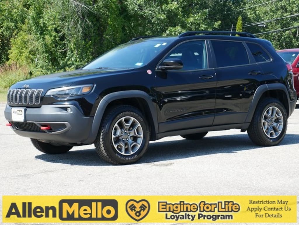 Allen Mello Chrysler Jeep Dodge Ram is proud to present you with another True Market Priced Pre-Owned Vehicle. This 2022 Jeep Cherokee Trailhawk is loaded with the following Factory Options: Quick Order Package 27E, Sun, Sound & Nav Group (DISC) (1-Year SiriusXM Guardian Trial, 4G LTE Wi-Fi Hot Spot, 5-Year SiriusXM Traffic Service, 5-Year SiriusXM Travel Link Service, 8.4" Touchscreen Display, Apple CarPlay, For Details, Visit DriveUconnect.com, For More Info, Call 800-643-2112, Google Android Auto, GPS Antenna Input, GPS Navigation, HD Radio, Integrated Voice Command w/Bluetooth, Off-Road Info Pages, Power Front/Fixed Rear Full Sunroof, Premium Alpine Speaker System, Radio: Uconnect 4C Nav w/8.4" Display, SiriusXM Radio Service, SiriusXM Satellite Radio, SiriusXM Traffic Plus, SiriusXM Travel Link, and USB Host Flip), 3.517 Final Drive Ratio, 4-Wheel Disc Brakes, 6 Speakers, ABS brakes, Air Conditioning, Alloy wheels, AM/FM radio: SiriusXM, Anti-whiplash front head restraints, Apple CarPlay/Android Auto, Automatic temperature control, Brake assist, Cloth/Premium Vinyl Bucket Seats, Compass, Delay-off headlights, Driver door bin, Driver vanity mirror, Dual front impact airbags, Dual front side impact airbags, Electronic Stability Control, Four wheel independent suspension, Front anti-roll bar, Front Bucket Seats, Front Center Armrest, Front dual zone A/C, Front fog lights, Front License Plate Bracket, Front reading lights, Fully automatic headlights, Heated door mirrors, Heated front seats, Heated steering wheel, Illuminated entry, K-Black Door Trim Panel Appliques, K-Black Interior Accents, Knee airbag, Leather Shift Knob, Low tire pressure warning, Occupant sensing airbag, Off Road Suspension, Outside temperature display, Overhead airbag, Overhead console, Panic alarm, ParkView Rear Back-Up Camera, Passenger door bin, Passenger vanity mirror, Power door mirrors, Power driver seat, Power steering, Power windows, Radio data system, Radio: Uconnect 4 w/8.4" Display, Rain sensing wipers, Rear anti-roll bar, Rear reading lights, Rear seat center armrest, Rear side impact airbag, Rear window defroster, Rear window wiper, Remote keyless entry, Roof rack: rails only, Speed control, Speed-sensing steering, Split folding rear seat, Spoiler, Steering wheel mounted audio controls, Tachometer, Telescoping steering wheel, Tilt steering wheel, Traction control, Trip computer, Turn signal indicator mirrors, Variably intermittent wipers, Voltmeter, and Wheels: 17" x 7.5" Painted Diamond Cut Aluminum!!