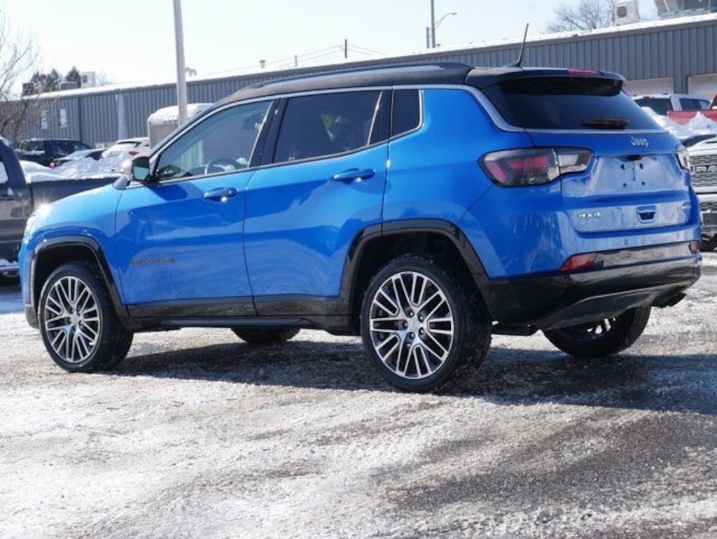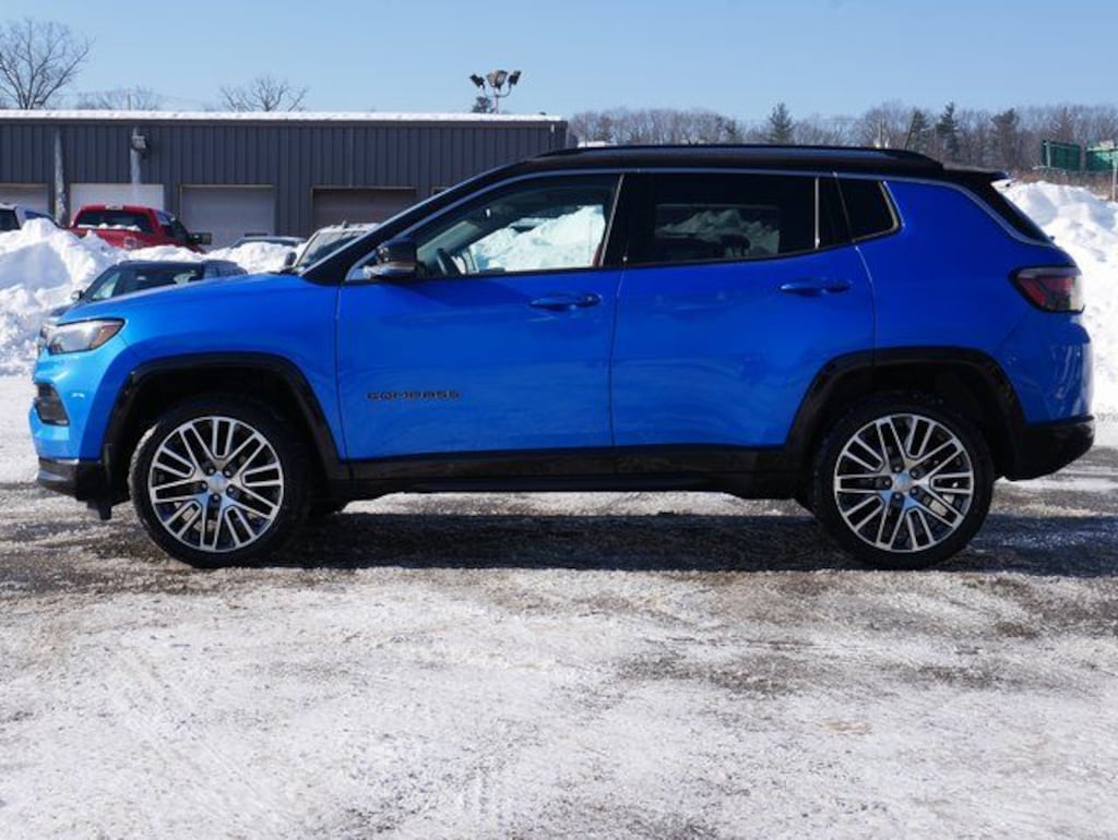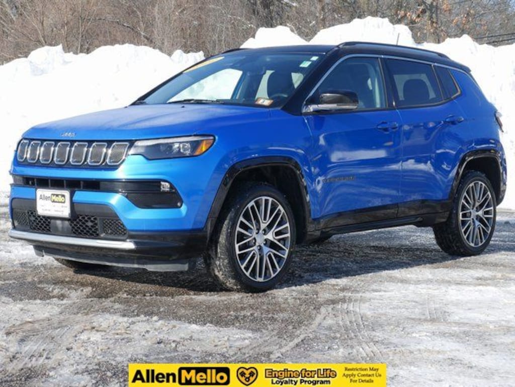 Allen Mello Chrysler Jeep Dodge Ram is proud to present you with another True Market Priced Pre-Owned Vehicle. This 2022 Jeep Compass Limited is loaded with the following Factory Options: 4WD Elite Group (10.1" Touchscreen Display, 115V Auxiliary Power Outlet, 2nd Row Heated Seats, 2nd Row USB Type A/C Charge Only, 4G LTE Wi-Fi Hot Spot, Alexa Built-In, Cluster 10.25" TFT Color Display, Connected Travel & Traffic Services, Disassociated Touchscreen Display, Driver Seat Memory, Foot Activated Open 'N Go Liftgate, For Details, Visit DriveUconnect.com, For More Info, Call 800-643-2112, Global Telematics Box Module (TBM), Gloss Black Door Cladding, Gloss Black Exterior Sill, Gloss Black Fascias, Gloss Black Wheel Flares, GPS Navigation, HD Radio, Integrated Voice Command w/Bluetooth, LED Low/Highbeam Projector Headlamps, No Satellite Coverage HI/AK/PR/VI/GU, Power 2-Way Passenger Lumbar Adjust, Power 8-Way Adjust Front Passenger Seat, Power Liftgate, Premium Leather Trimmed Bucket Seats, Premium LED Fog Lamps, Premium Taillamps, Radio: Uconnect 5 Nav w/10.1" Display, Reversible Carpet/Vinyl Cargo Mat, SiriusXM Guardian - Included Trial (B), SiriusXM Radio Service, SiriusXM Satellite Radio, SiriusXM w/360L, Ventilated Front Seats, and Wheels: 19" x 7.5" Painted Diamond Cut Aluminum), Quick Order Package 2GG, Sun and Sound Group (Power Front/Fixed Rear Full Sunroof and Premium Alpine Speaker System), 4WD, 3.73 Axle Ratio, 4-Wheel Disc Brakes, 6 Speakers, ABS brakes, Air Conditioning, Alloy wheels, AM/FM radio: SiriusXM, Anti-whiplash front head restraints, Auto High-beam Headlights, Auto-dimming Rear-View mirror, Automatic temperature control, Brake assist, Bumpers: body-color, Compass, Delay-off headlights, Driver door bin, Driver vanity mirror, Dual front impact airbags, Dual front side impact airbags, Electronic Stability Control, Emergency communication system: SiriusXM Guardian, Four wheel independent suspension, Front anti-roll bar, Front Bucket Seats, Front Center Armrest w/Storage, Front dual zone A/C, Front fog lights, Front License Plate Bracket, Front reading lights, Fully automatic headlights, Gloss Black Exterior Mirrors, Heated door mirrors, Heated front seats, Heated steering wheel, Illuminated entry, Knee airbag, Leather Shift Knob, Leather Trimmed Bucket Seats, Low tire pressure warning, Occupant sensing airbag, Outside temperature display, Overhead airbag, Overhead console, Panic alarm, ParkView Rear Back-Up Camera, Passenger door bin, Passenger vanity mirror, Power door mirrors, Power driver seat, Power steering, Power windows, Radio: Uconnect 5 w/10.1" Display, Rain sensing wipers, Rear anti-roll bar, Rear seat center armrest, Rear window defroster, Rear window wiper, Remote keyless entry, Roof rack: rails only, Security system, Speed control, Split folding rear seat, Spoiler, Steering wheel mounted audio controls, Tachometer, Telescoping steering wheel, Tilt steering wheel, Traction control, Trip computer, Turn signal indicator mirrors, Variably intermittent wipers, and Wheels: 18" x 7" Painted Diamond Cut Aluminum!!