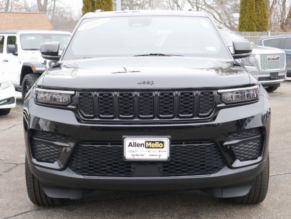 Allen Mello Chrysler Jeep Dodge Ram is proud to present you with another True Market Priced Pre-Owned Vehicle. This 2023 Jeep Grand Cherokee Altitude is loaded with the following Factory Options: 4WD 4WD, 3.45 Rear Axle Ratio, 4-Wheel Disc Brakes, 6 Speakers, ABS brakes, Air Conditioning, Alloy wheels, Anti-whiplash front head restraints, Automatic temperature control, Brake assist, Cloth Seats, Compass, Delay-off headlights, Driver door bin, Driver vanity mirror, Dual front impact airbags, Dual front side impact airbags, Electronic Stability Control, Four wheel independent suspension, Front anti-roll bar, Front Bucket Seats, Front dual zone A/C, Front reading lights, Fully automatic headlights, Gloss Black Exterior Accents, Heated door mirrors, Illuminated entry, Knee airbag, Low tire pressure warning, Occupant sensing airbag, Outside temperature display, Overhead airbag, Overhead console, Panic alarm, ParkView Rear Back-Up Camera, Passenger door bin, Passenger vanity mirror, Power door mirrors, Power driver seat, Power steering, Power Sunroof, Power windows, Radio data system, Rear anti-roll bar, Rear reading lights, Rear window defroster, Rear window wiper, Remote keyless entry, Security system, Speed control, Speed-Sensitive Wipers, Split folding rear seat, Spoiler, Steering wheel mounted audio controls, Tachometer, Telescoping steering wheel, Tilt steering wheel, Traction control, Trip computer, Variably intermittent wipers, Voltmeter, and Wheels: 17" x 6.5" Fully Painted Aluminum!!