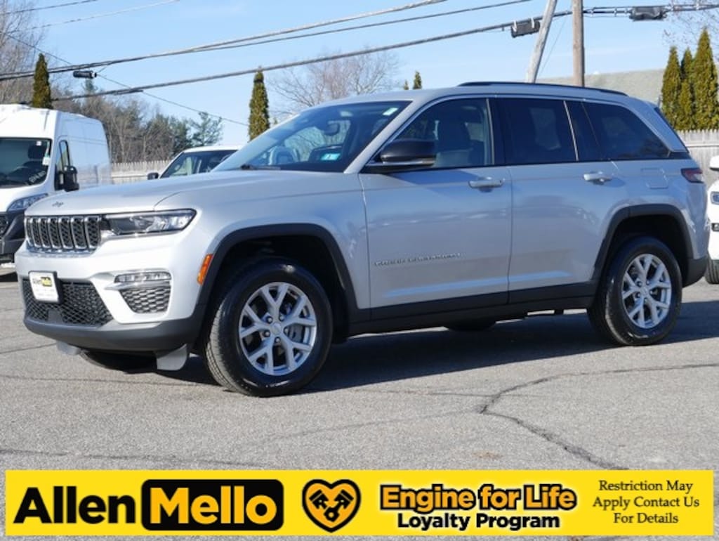 Allen Mello Chrysler Jeep Dodge Ram is proud to present you with another True Market Priced Pre-Owned Vehicle. This 2023 Jeep Grand Cherokee Limited is loaded with the following Factory Options: 4WD Quick Order Package 22E, 4WD, 3.45 Rear Axle Ratio, 4-Wheel Disc Brakes, 6 Speakers, ABS brakes, Active Noise Control System, Air Conditioning, Alloy wheels, AM/FM radio: SiriusXM with 360L, Anti-whiplash front head restraints, Audio memory, Auto High-beam Headlights, Automatic temperature control, Brake assist, Bumpers: body-color, Capri Leatherette Seats, Compass, Delay-off headlights, Driver door bin, Driver vanity mirror, Dual front impact airbags, Dual front side impact airbags, Dual-Pane Panoramic Sunroof, Electronic Stability Control, Emergency communication system, Four wheel independent suspension, Front anti-roll bar, Front Bucket Seats, Front Center Armrest w/Storage, Front dual zone A/C, Front fog lights, Front License Plate Bracket, Front reading lights, Fully automatic headlights, Garage door transmitter, Heated door mirrors, Heated front seats, Heated rear seats, Heated steering wheel, Illuminated entry, Knee airbag, Low tire pressure warning, Memory seat, Molded In Color Black/Gloss Black Roof Rails, Navigation System, Normal Duty Suspension, Occupant sensing airbag, Outside temperature display, Overhead airbag, Overhead console, Panic alarm, ParkView Rear Back-Up Camera, Passenger door bin, Passenger vanity mirror, Power door mirrors, Power driver seat, Power Liftgate, Power passenger seat, Power steering, Power windows, Radio data system, Radio: Uconnect 5 Nav w/10.1" Display, Rear anti-roll bar, Rear reading lights, Rear window defroster, Rear window wiper, Remote keyless entry, Security system, Speed control, Speed-Sensitive Wipers, Split folding rear seat, Spoiler, Steering wheel mounted audio controls, Tachometer, Telescoping steering wheel, Tilt steering wheel, Traction control, Trip computer, Turn signal indicator mirrors, Variably intermittent wipers, Voltmeter, and Wheels: 18" x 8" Fully Painted Aluminum!!