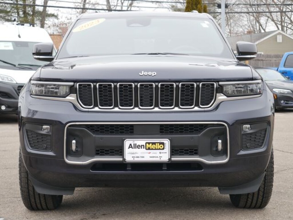 Allen Mello Chrysler Jeep Dodge Ram is proud to present you with another True Market Priced Pre-Owned Vehicle. This 2023 Jeep Grand Cherokee L Overland is loaded with the following Factory Options: Quick Order Package 23N, 10 Speakers, 3.45 Rear Axle Ratio, 3rd row seats: split-bench, 4-Wheel Disc Brakes, ABS brakes, Active Noise Control System, Adaptive suspension, Air Conditioning, Alloy wheels, AM/FM radio: SiriusXM with 360L, Anti-whiplash front head restraints, Audio memory, Auto High-beam Headlights, Auto-dimming door mirrors, Auto-dimming Rear-View mirror, Auto-leveling suspension, Automatic temperature control, Brake assist, Bumpers: body-color, Compass, Delay-off headlights, Driver door bin, Driver vanity mirror, Dual front impact airbags, Dual front side impact airbags, Electronic Stability Control, Emergency communication system, Four wheel independent suspension, Front anti-roll bar, Front Bucket Seats, Front Center Armrest w/Storage, Front dual zone A/C, Front fog lights, Front License Plate Bracket, Front reading lights, Fully automatic headlights, Garage door transmitter, Heated door mirrors, Heated front seats, Heated rear seats, Heated steering wheel, Illuminated entry, Knee airbag, Low tire pressure warning, Memory seat, Nappa Leather Seats, Navigation System, Normal Duty Suspension, Occupant sensing airbag, Outside temperature display, Overhead airbag, Overhead console, Panic alarm, Passenger door bin, Passenger vanity mirror, Power door mirrors, Power driver seat, Power Fold Seatbacks, Power Liftgate, Power moonroof, Power passenger seat, Power steering, Power windows, Radio data system, Radio: Uconnect 5 Nav w/10.1" Display, Rain sensing wipers, Rear air conditioning, Rear anti-roll bar, Rear reading lights, Rear window defroster, Rear window wiper, Reclining 3rd row seat, Remote keyless entry, Security system, Speed control, Speed-Sensitive Wipers, Split folding rear seat, Spoiler, Steering wheel memory, Steering wheel mounted audio controls, Tachometer, Telescoping steering wheel, Tilt steering wheel, Traction control, Trip computer, Turn signal indicator mirrors, Variably intermittent wipers, Ventilated front seats, Voltmeter, and Wheels: 20" x 8.5" Machined Face Aluminum!!