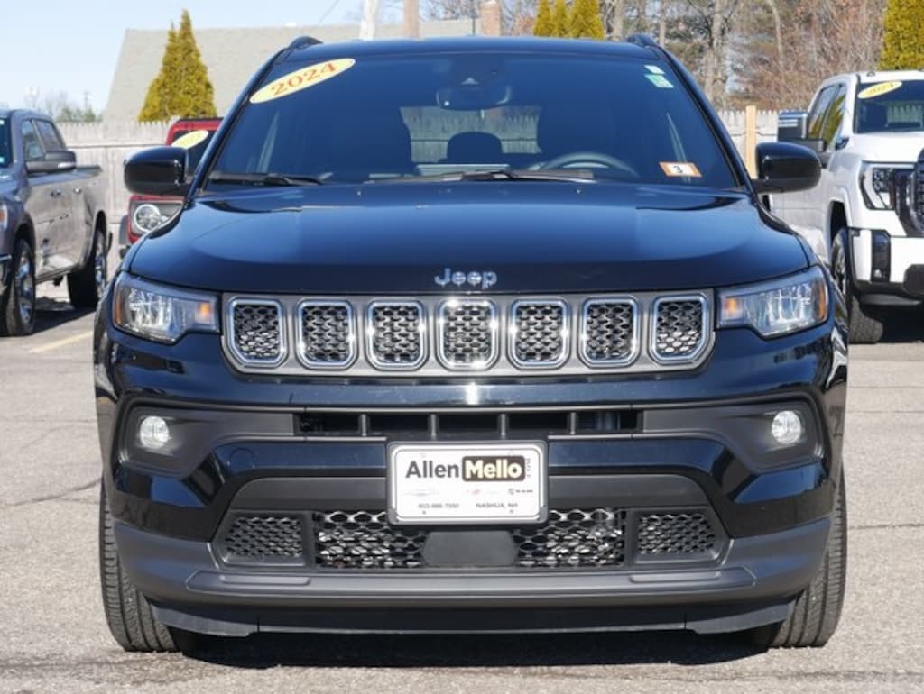 Allen Mello Chrysler Jeep Dodge Ram is proud to present you with another True Market Priced Pre-Owned Vehicle. This 2024 Jeep Compass Latitude Lux is loaded with the following Factory Options: 4WD Quick Order Package 29L, 4WD, 3.73 Final Drive Ratio, 4-Wheel Disc Brakes, 6 Speakers, ABS brakes, Air Conditioning, Alloy wheels, AM/FM radio: SiriusXM, Auto High-beam Headlights, Brake assist, Bumpers: body-color, Compass, Delay-off headlights, Driver door bin, Driver vanity mirror, Dual front impact airbags, Dual front side impact airbags, Electronic Stability Control, Emergency communication system: Jeep Connect, Four wheel independent suspension, Front anti-roll bar, Front Bucket Seats, Front Center Armrest w/Storage, Front fog lights, Front License Plate Bracket, Front reading lights, Fully automatic headlights, Heated door mirrors, Heated front seats, Heated steering wheel, Illuminated entry, Knee airbag, Leather Shift Knob, Leather steering wheel, Leatherette Seats, Low tire pressure warning, Occupant sensing airbag, Outside temperature display, Overhead airbag, Overhead console, Panic alarm, ParkView Rear Back-Up Camera, Passenger door bin, Passenger vanity mirror, Power door mirrors, Power driver seat, Power steering, Power windows, Radio: Uconnect 5 w/10.1" Display, Rear anti-roll bar, Rear seat center armrest, Rear window defroster, Rear window wiper, Remote keyless entry, Security system, Speed control, Split folding rear seat, Spoiler, Steering wheel mounted audio controls, Tachometer, Telescoping steering wheel, Tilt steering wheel, Traction control, Trip computer, Variably intermittent wipers, and Wheels: 18" x 7" Painted Aluminum!!