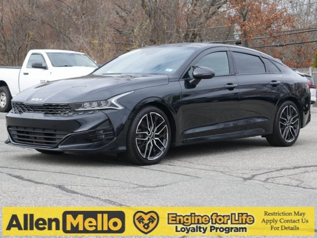 Allen Mello Chrysler Jeep Dodge Ram is proud to present you with another True Market Priced Pre-Owned Vehicle. This 2023 Kia K5 GT is loaded with the following Factory Options: 4-Wheel Disc Brakes, 6 Speakers, ABS brakes, Air Conditioning, Alloy wheels, AM/FM radio: SiriusXM, Apple CarPlay & Android Auto, Auto High-beam Headlights, Automatic temperature control, Brake assist, Bumpers: body-color, Carpeted Floor Mats, Delay-off headlights, Driver door bin, Driver vanity mirror, Dual front impact airbags, Dual front side impact airbags, Electronic Stability Control, Emergency communication system, Four wheel independent suspension, Front anti-roll bar, Front Bucket Seats, Front Center Armrest, Front dual zone A/C, Front fog lights, Front reading lights, Fully automatic headlights, Heated door mirrors, Heated front seats, Heated Sport Bucket Seats, Illuminated entry, Knee airbag, Low tire pressure warning, Navigation System, Occupant sensing airbag, Outside temperature display, Overhead airbag, Overhead console, Panic alarm, Passenger door bin, Passenger vanity mirror, Power door mirrors, Power driver seat, Power moonroof, Power steering, Power windows, Radio data system, Radio: AM/FM/MP3 Audio System, Rear anti-roll bar, Rear reading lights, Rear seat center armrest, Rear side impact airbag, Rear window defroster, Remote keyless entry, Security system, Smart Key w/ Push Button and Remote Start, Speed control, Speed-sensing steering, Split folding rear seat, Spoiler, Sport steering wheel, Steering wheel mounted audio controls, SynTex Seat Trim, Tachometer, Telescoping steering wheel, Tilt steering wheel, Traction control, Trip computer, Turn signal indicator mirrors, Variably intermittent wipers, and Wheels: 19" Gloss Black Machined Finish Alloy!!
