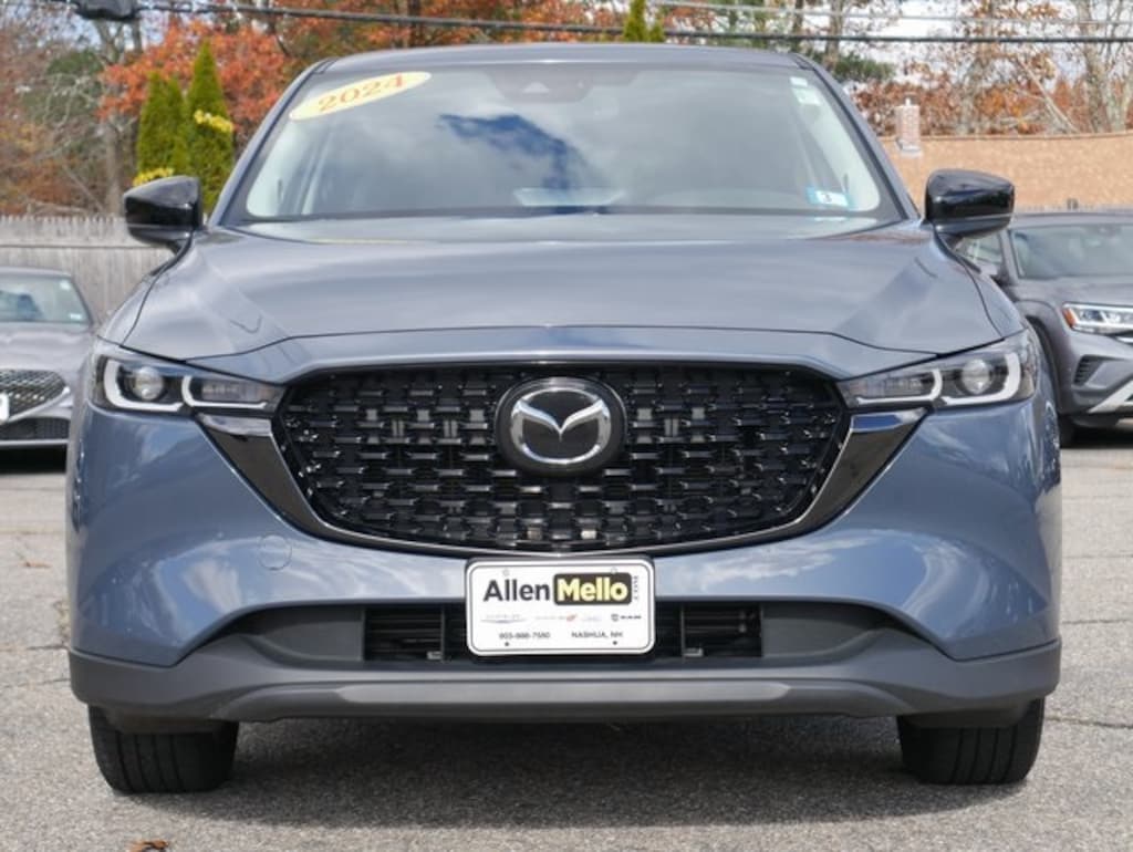 Allen Mello Chrysler Jeep Dodge Ram is proud to present you with another True Market Priced Pre-Owned Vehicle. This 2024 Mazda CX-5 2.5 S Carbon Edition is loaded with the following Factory Options: 10 Speakers, 4-Wheel Disc Brakes, 4.624 Axle Ratio, ABS brakes, Air Conditioning, Alloy wheels, AM/FM radio, AppLink/Apple CarPlay and Android Auto, Auto High-beam Headlights, Auto-dimming Rear-View mirror, Automatic temperature control, Brake assist, Bumpers: body-color, Delay-off headlights, Driver door bin, Driver vanity mirror, Dual front impact airbags, Dual front side impact airbags, E911 Automatic Emergency Notification, Electronic Stability Control, Emergency communication system: MAZDA CONNECT, Exterior Parking Camera Rear, Four wheel independent suspension, Front anti-roll bar, Front Bucket Seats, Front Center Armrest w/Storage, Front dual zone A/C, Front reading lights, Fully automatic headlights, Garage door transmitter: HomeLink, Heated Front Bucket Seats, Heated front seats, Illuminated entry, Infotainment System Voice Command, Leather Seat Trim, Leather Shift Knob, Leather steering wheel, Low tire pressure warning, Memory seat, Multifunction Commander Control, Occupant sensing airbag, Outside temperature display, Overhead airbag, Overhead console, Pandora, Panic alarm, Passenger door bin, Passenger vanity mirror, Power door mirrors, Power driver seat, Power Liftgate, Power moonroof, Power passenger seat, Power steering, Power windows, Radio Broadcast Data System Program Information, Radio data system, Radio: AM/FM/HD Audio System, Rain sensing wipers, Rear anti-roll bar, Rear reading lights, Rear seat center armrest, Rear window defroster, Rear window wiper, Remote keyless entry, SMS Text Msg Audio Delivery & Reply, Speed control, Speed-sensing steering, Split folding rear seat, Spoiler, Steering wheel mounted audio controls, Tachometer, Telescoping steering wheel, Tilt steering wheel, Traction control, Trip computer, Turn signal indicator mirrors, Variably intermittent wipers, and Wheels: 19" x 7J Aluminum Alloy!!
