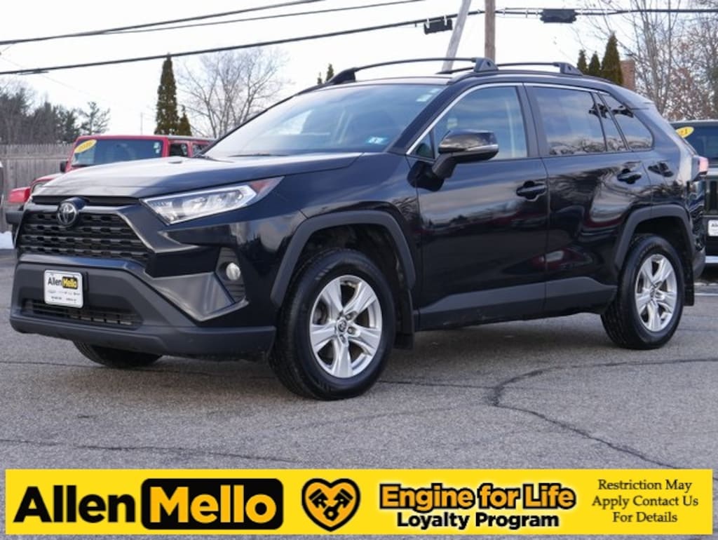 Allen Mello Chrysler Jeep Dodge Ram is proud to present you with another True Market Priced Pre-Owned Vehicle. This 2021 Toyota RAV4 XLE Allen Mello Engine For Life is loaded with the following Factory Options: AWD and Cloth Allen Mello Engine For Life Certified, AWD, Cloth, 4-Wheel Disc Brakes, 6 Speakers, ABS brakes, Air Conditioning, Alloy wheels, AM/FM radio: SiriusXM, AM/FM Stereo, Apple CarPlay/Android Auto, Auto High-beam Headlights, Automatic temperature control, Axle Ratio: 3.177, Brake assist, Bumpers: body-color, Delay-off headlights, Driver door bin, Driver vanity mirror, Dual front impact airbags, Dual front side impact airbags, Electronic Stability Control, Emergency communication system, Exterior Parking Camera Rear, Fabric Seat Trim, Four wheel independent suspension, Front anti-roll bar, Front Bucket Seats, Front Center Armrest, Front dual zone A/C, Front fog lights, Front reading lights, Fully automatic headlights, Heated door mirrors, Illuminated entry, Knee airbag, Low tire pressure warning, Occupant sensing airbag, Outside temperature display, Overhead airbag, Overhead console, Panic alarm, Passenger door bin, Passenger vanity mirror, Power door mirrors, Power driver seat, Power steering, Power windows, Radio data system, Rear anti-roll bar, Rear seat center armrest, Rear window defroster, Rear window wiper, Remote keyless entry, Roof rack: rails only, Speed control, Speed-sensing steering, Split folding rear seat, Spoiler, Steering wheel mounted audio controls, Tachometer, Telescoping steering wheel, Tilt steering wheel, Traction control, Trip computer, Turn signal indicator mirrors, Variably intermittent wipers, and Wheels: 17" 5-Spoke Silver Alloy!!