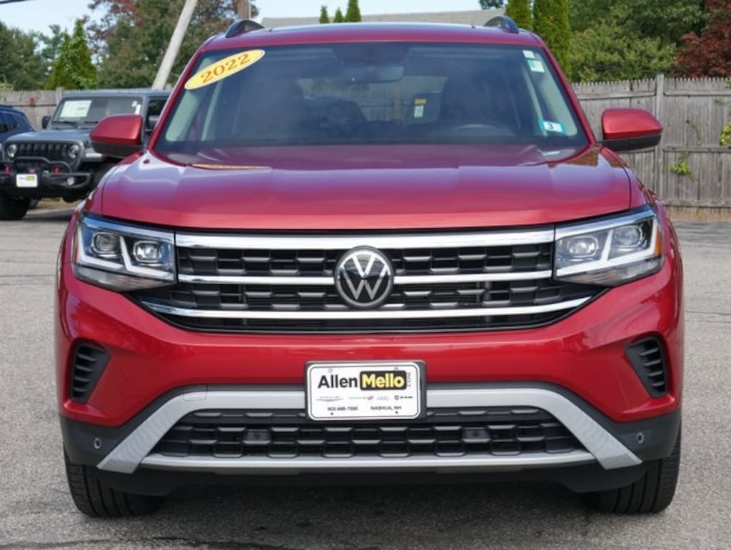 Allen Mello Chrysler Jeep Dodge Ram is proud to present you with another True Market Priced Pre-Owned Vehicle. This 2022 Volkswagen Atlas 3.6L V6 SE w/Technology is loaded with the following Factory Options: 3.60 Axle Ratio, 3rd row seats: split-bench, 4-Wheel Disc Brakes, 6 Speakers, ABS brakes, Air Conditioning, Alloy wheels, AM/FM radio: SiriusXM with 360L, Auto-dimming Rear-View mirror, Automatic temperature control, Brake assist, Bumpers: body-color, Compass, Delay-off headlights, Driver door bin, Driver vanity mirror, Dual front impact airbags, Dual front side impact airbags, Electronic Stability Control, Emergency communication system, Exterior Parking Camera Rear, Four wheel independent suspension, Front anti-roll bar, Front Bucket Seats, Front Center Armrest, Front dual zone A/C, Front fog lights, Front reading lights, Fully automatic headlights, Heated Comfort Front Bucket Seats, Heated door mirrors, Heated front seats, Illuminated entry, Leather Shift Knob, Low tire pressure warning, Occupant sensing airbag, Outside temperature display, Overhead airbag, Overhead console, Panic alarm, Passenger door bin, Passenger vanity mirror, Perforated V-Tex Leatherette Seating Surfaces, Power door mirrors, Power driver seat, Power Liftgate, Power steering, Power Tilting & Sliding Panoramic Sunroof, Power windows, Radio data system, Radio: MIB3 Composition Media w/8" Touchscreen, Rain sensing wipers, Rear air conditioning, Rear anti-roll bar, Rear reading lights, Rear seat center armrest, Rear window defroster, Rear window wiper, Remote keyless entry, Roof rack: rails only, Security system, Speed control, Speed-sensing steering, Split folding rear seat, Spoiler, Standard Suspension, Steering wheel mounted audio controls, Tachometer, Telescoping steering wheel, Tilt steering wheel, Traction control, Trip computer, Turn signal indicator mirrors, Variably intermittent wipers, and Wheels: 20" x 8J 5-Spoke Silver Painted Alloy!!